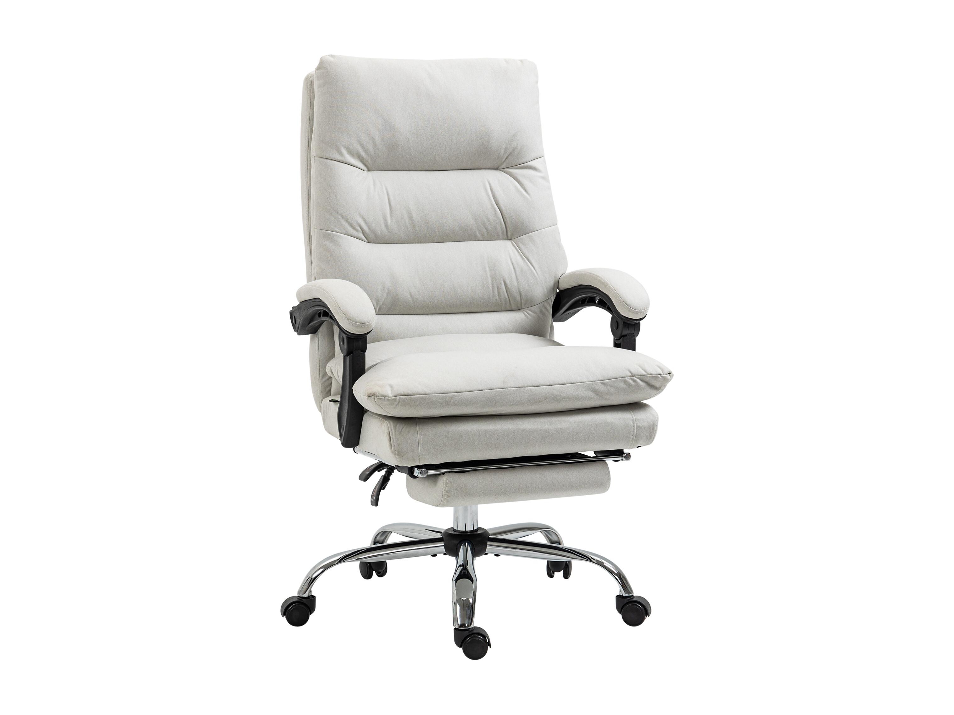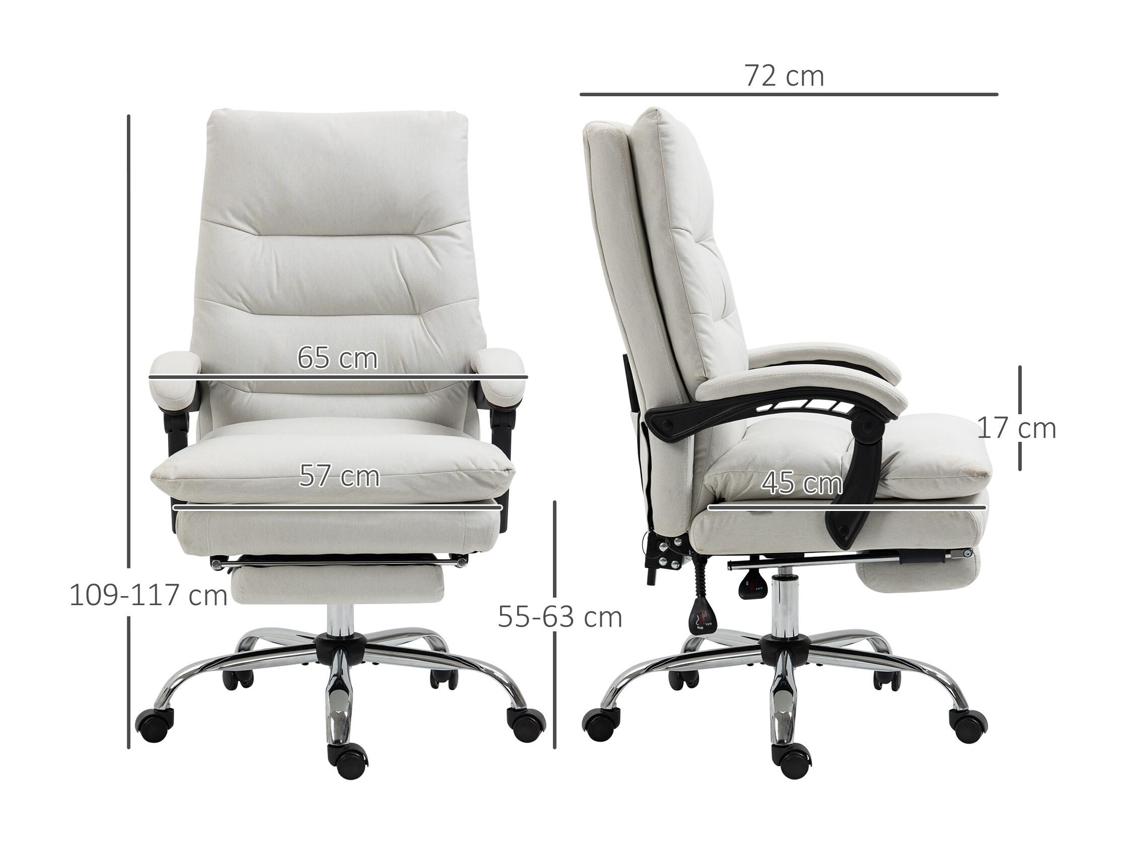 Silla de oficina ergonómica con masaje de 6 puntos, giratoria, con reposapiés, color crema