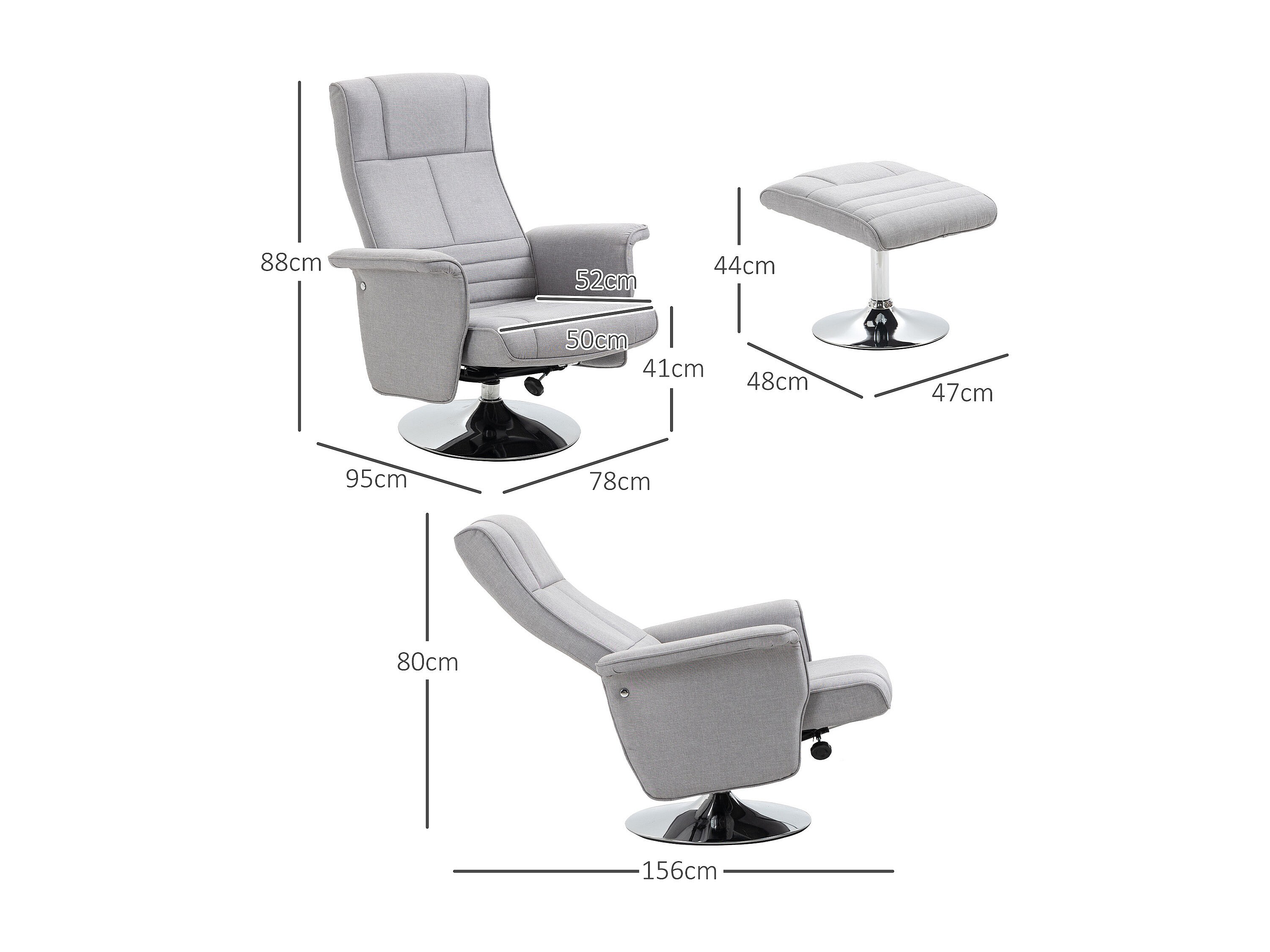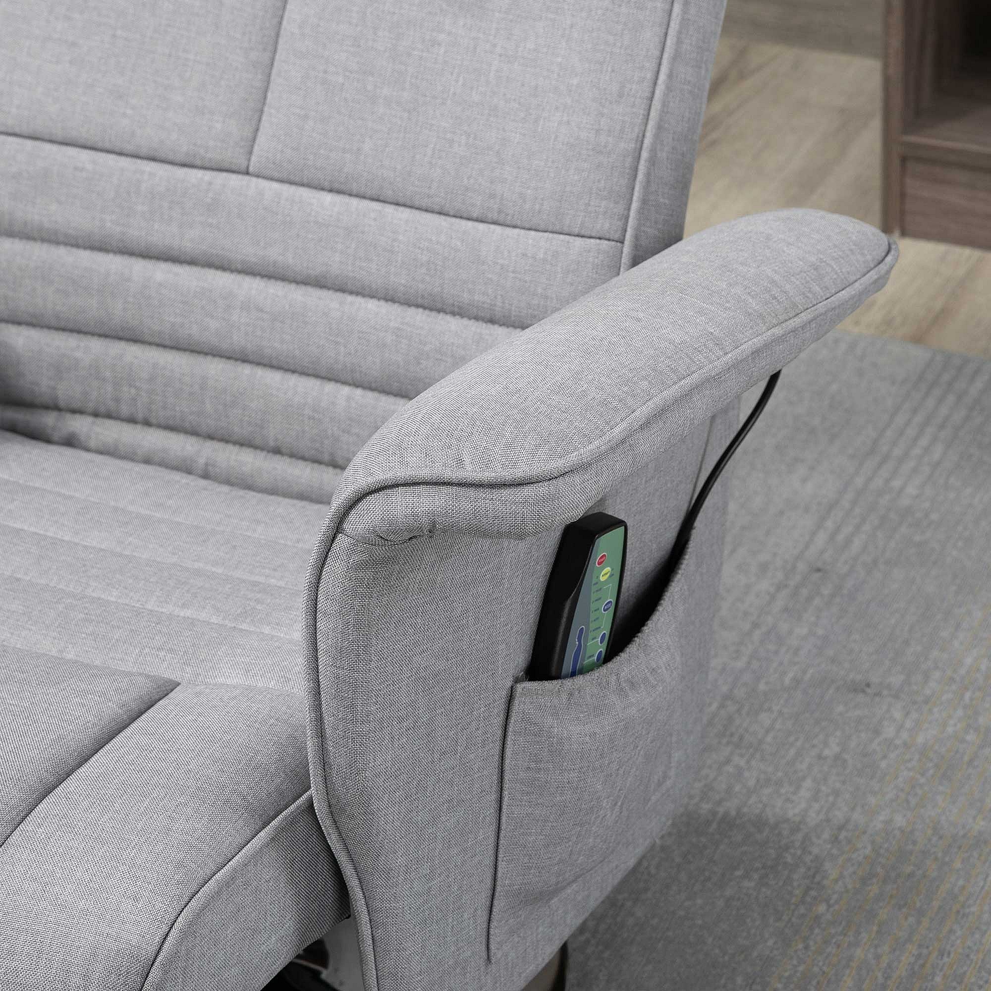 Sillón de masaje eléctrico con reposapiés de acero lino gris claro para sala de estar