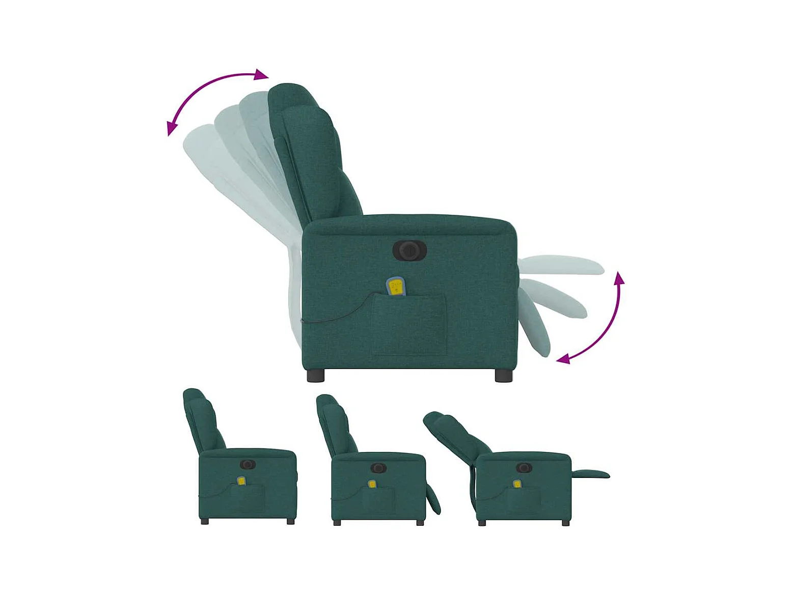 Sillón de masaje eléctrico reclinable de tela verde oscuro