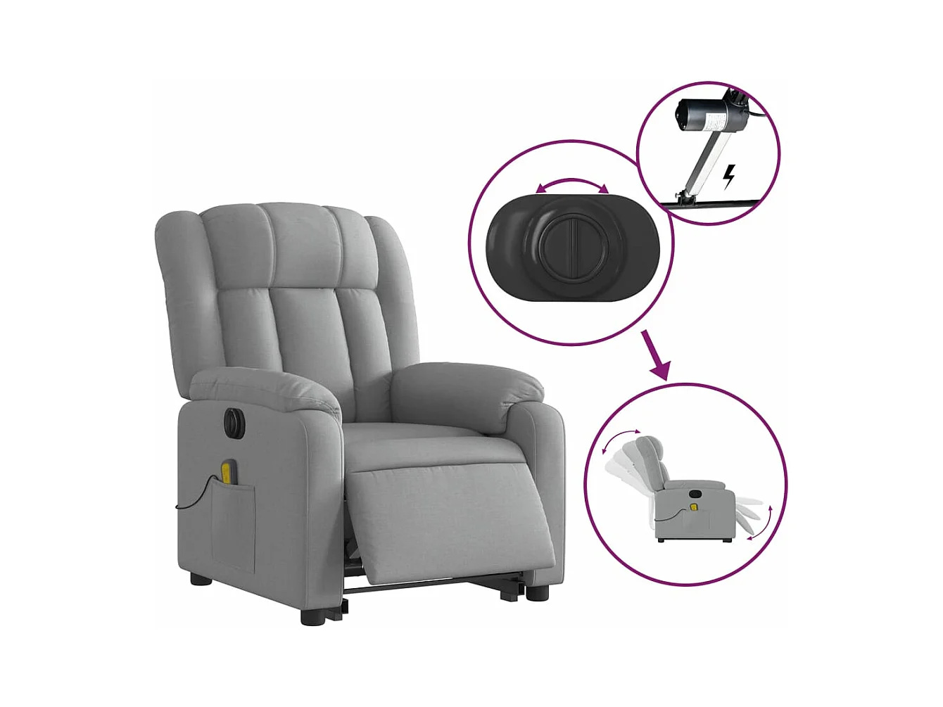 Sillón de masaje eléctrico reclinable elevable tela gris claro YOE49669