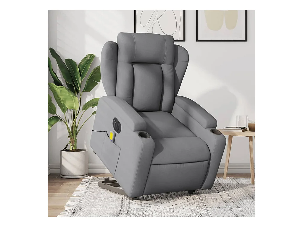 Sillón de masaje eléctrico reclinable elevable tela gris oscuro YOE14433
