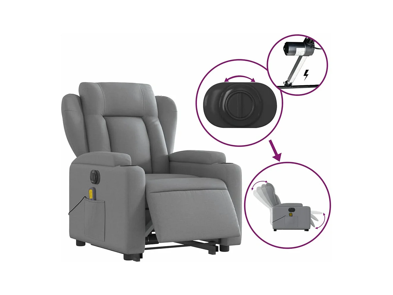 Sillón de masaje eléctrico reclinable elevable tela gris claro YOE55035