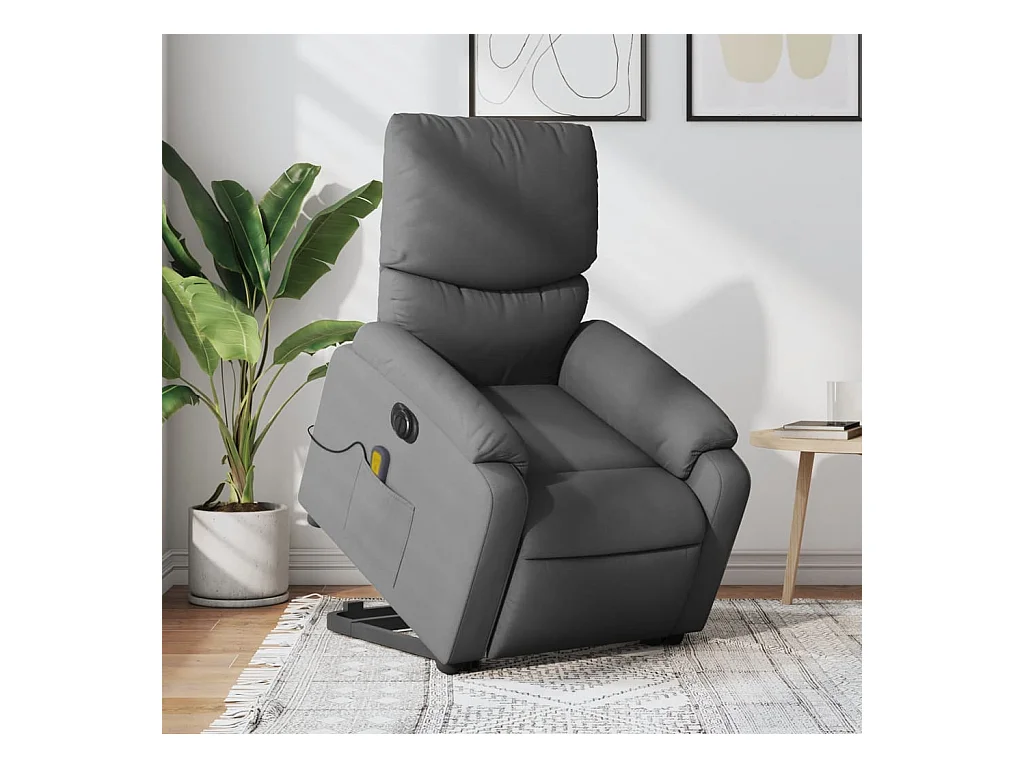 Sillón de masaje eléctrico reclinable elevable tela gris oscuro YOE87664