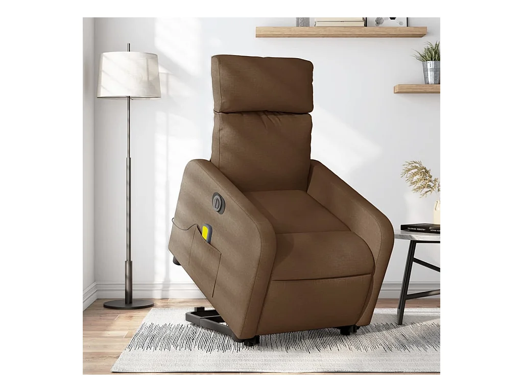 Sillón de masaje eléctrico reclinable elevable tela marrón