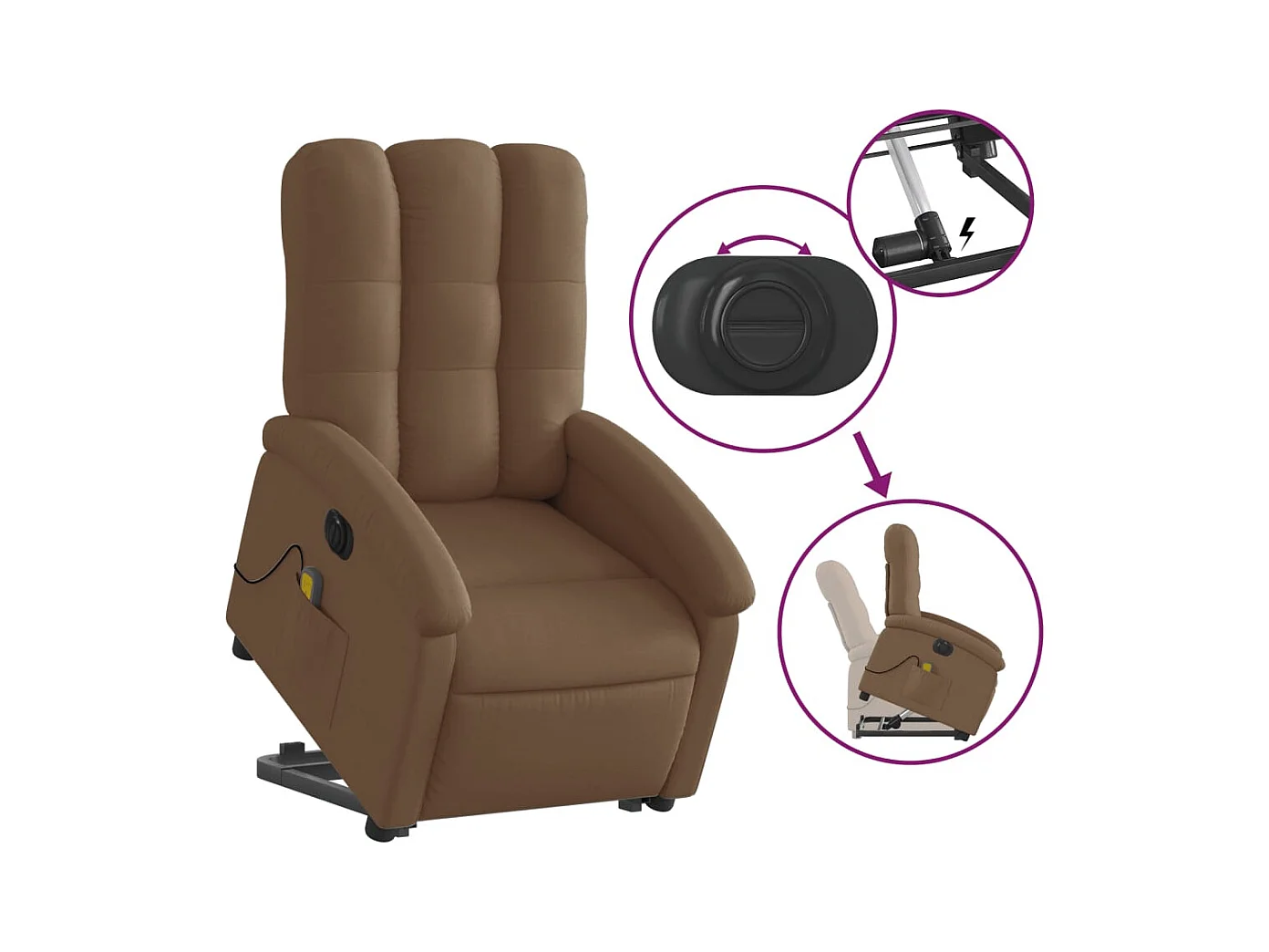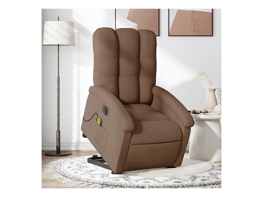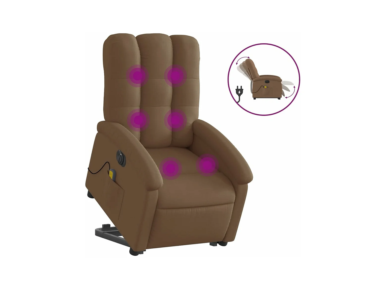 Sillón de masaje eléctrico reclinable elevable tela marrón YOE73508