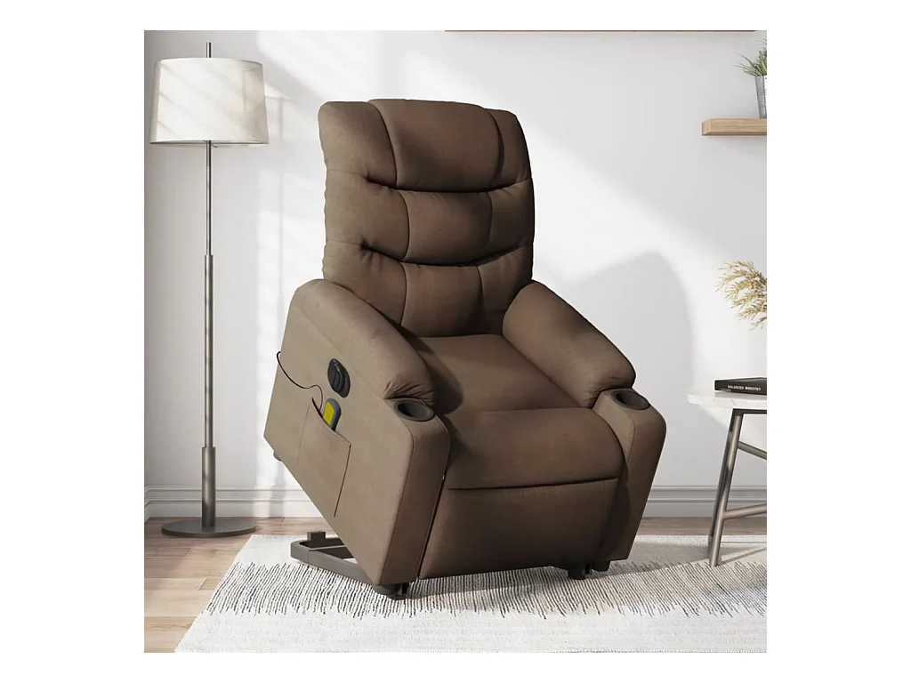 Sillón de masaje eléctrico reclinable elevable tela marrón YOE22979