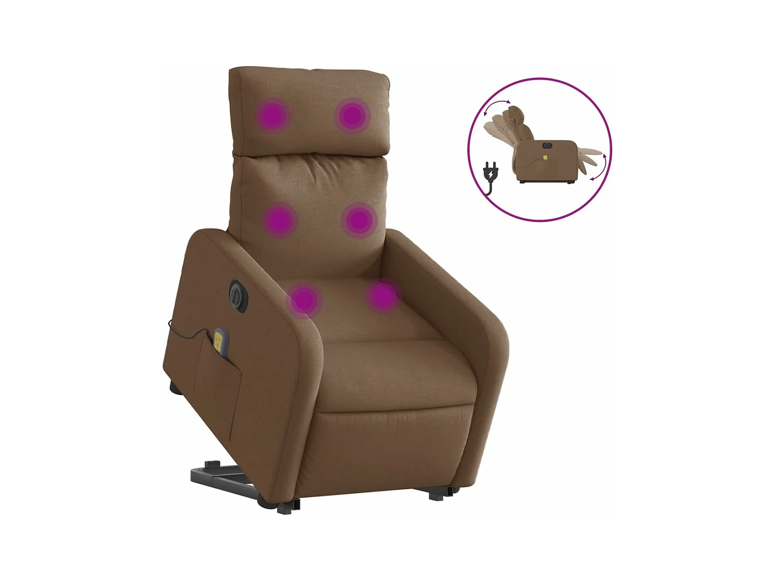 Sillón masaje eléctrico reclinable elevable tela marrón oscuro YOE69660