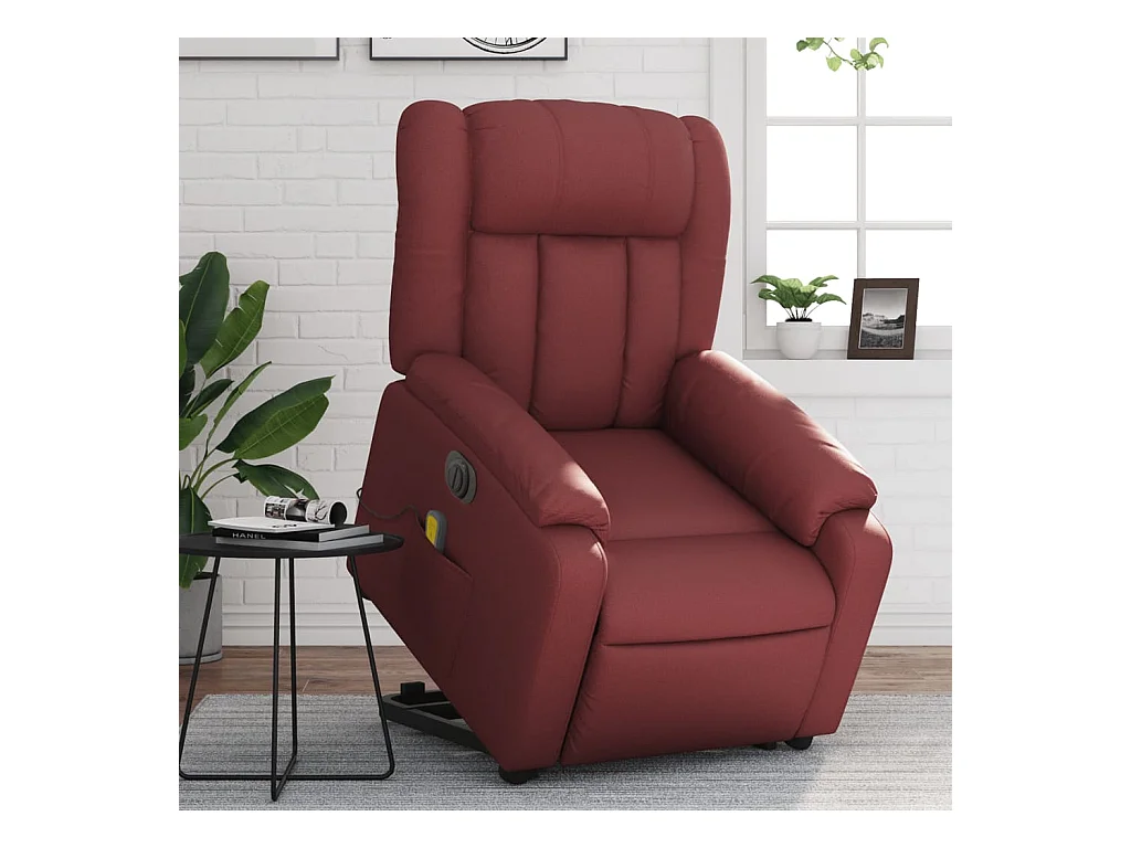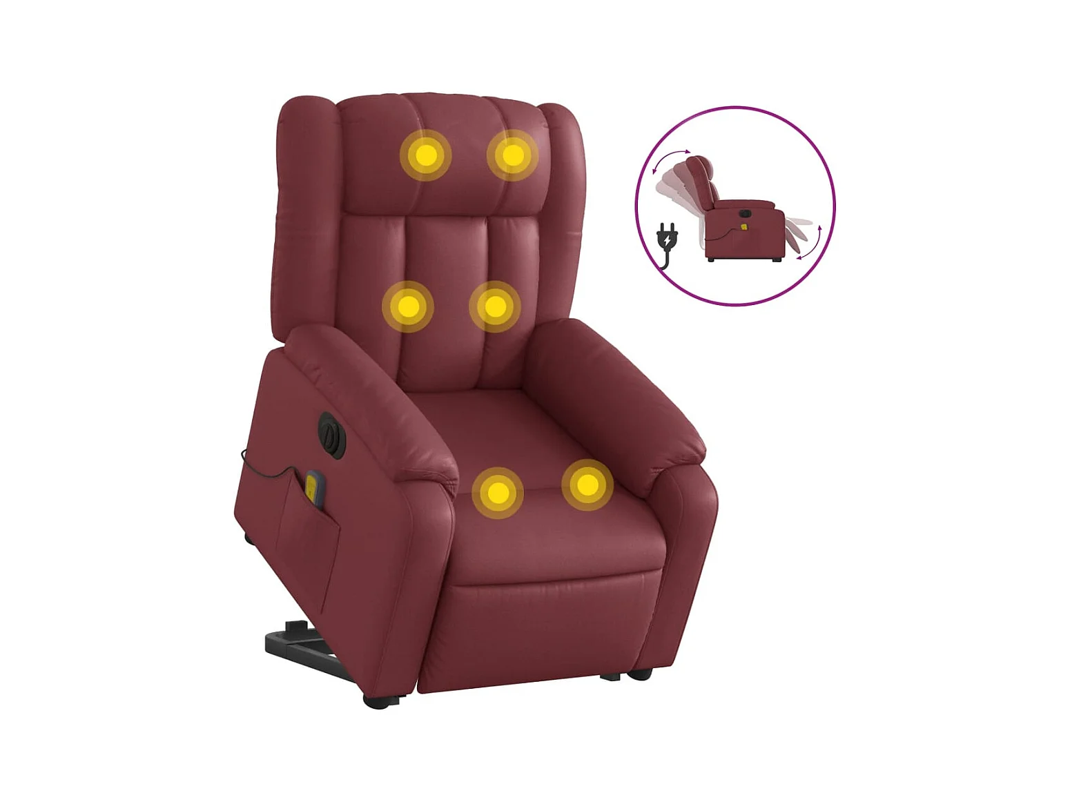 Sillón de masaje elevable eléctrico cuero artificial rojo tinto