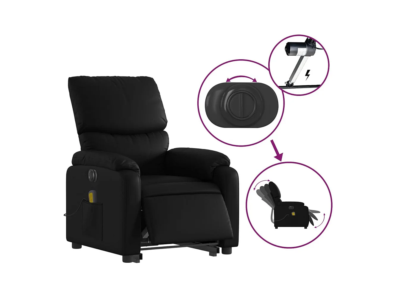 Sillón de masaje elevable eléctrico cuero sintético negro YOE40698