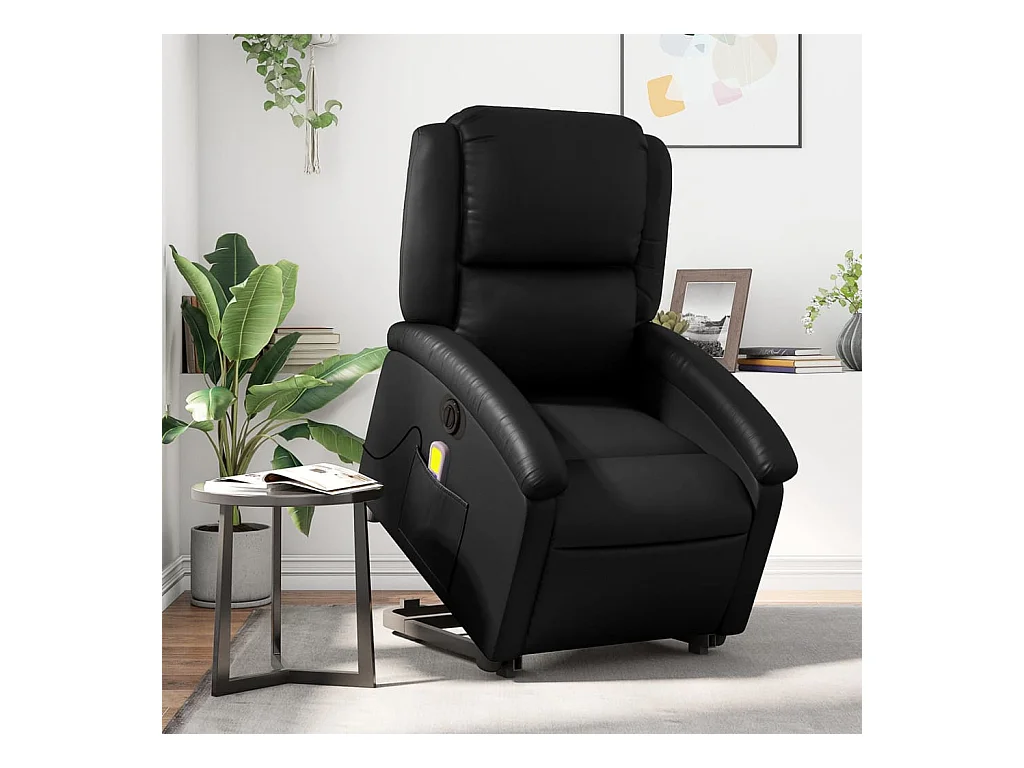 Sillón de masaje elevable eléctrico cuero sintético negro YOE37594