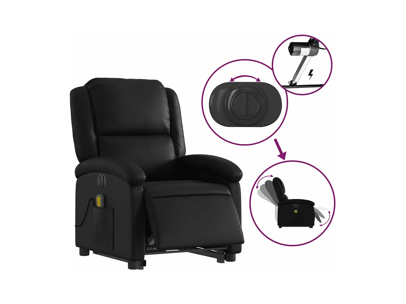 Sillón de masaje elevable eléctrico cuero sintético negro YOE40698