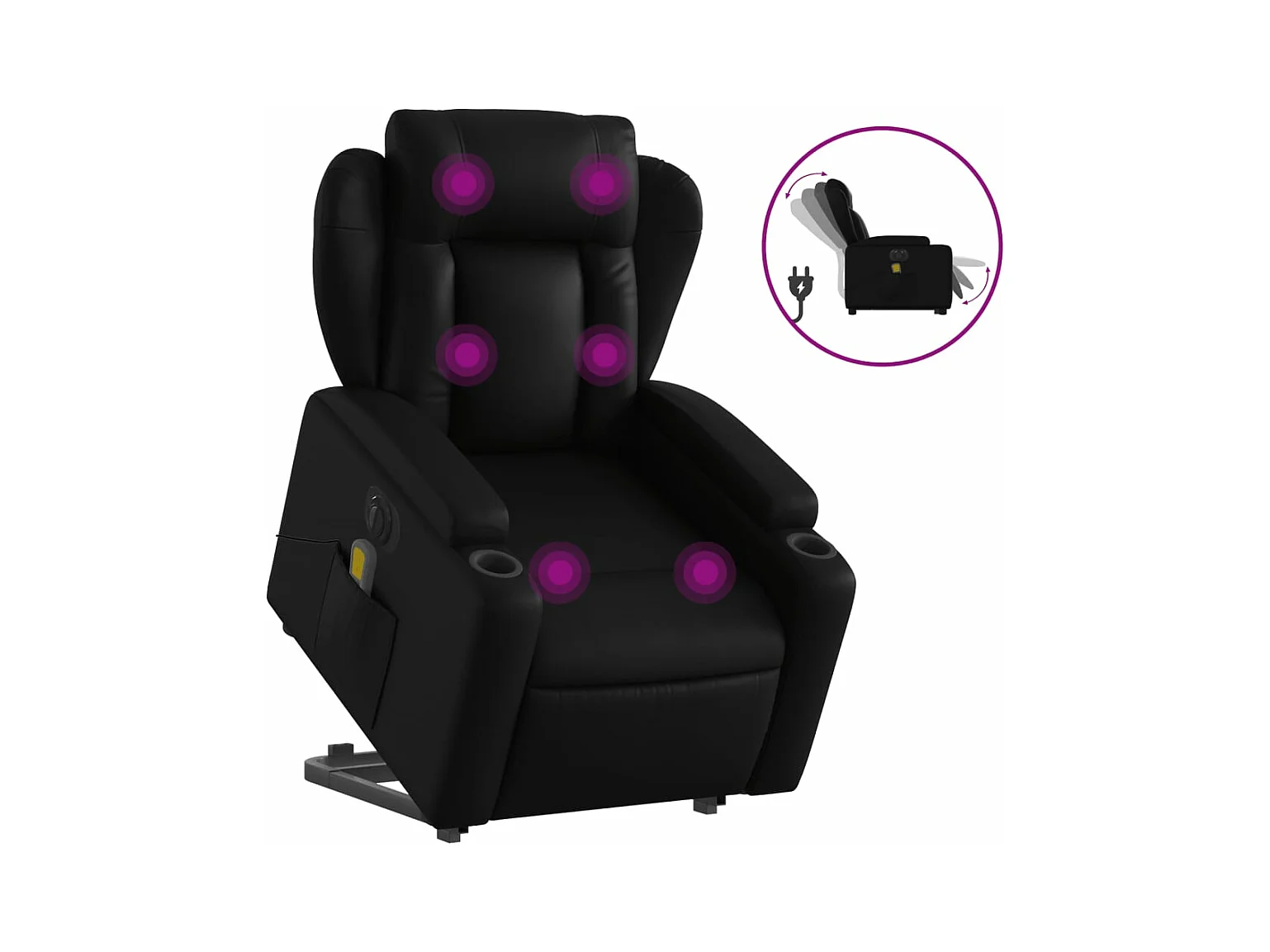 Sillón de masaje elevable eléctrico cuero sintético negro YOE53770