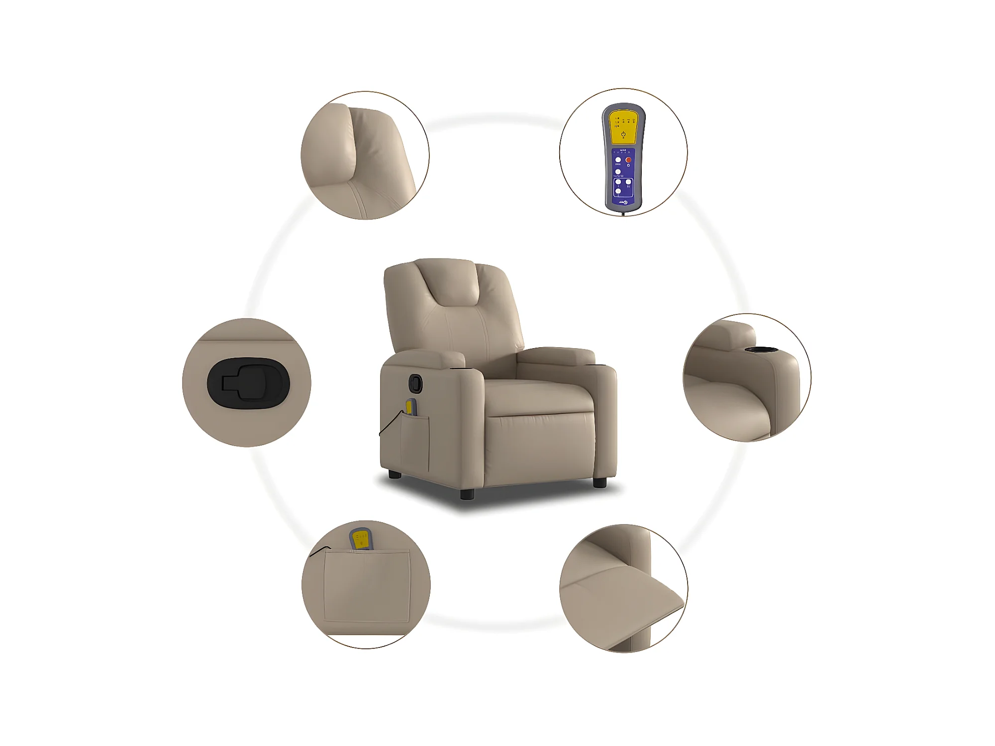 Sillón reclinable masaje pie cuero artificial color capuchino
