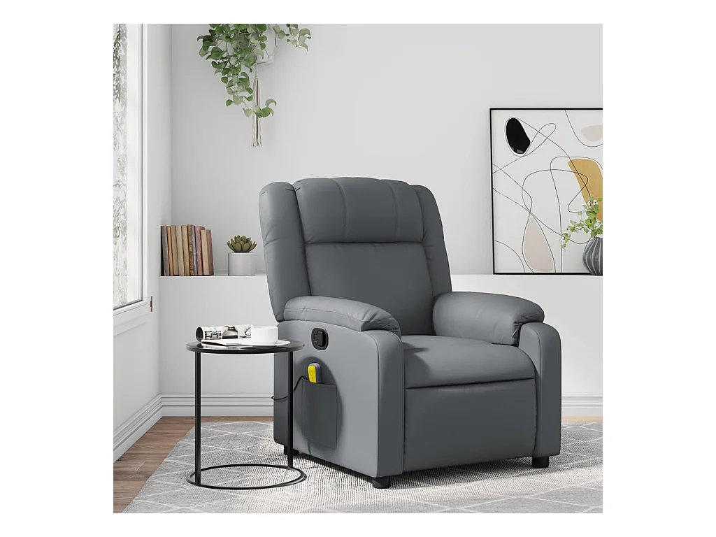Sillón de masaje reclinable cuero sintético gris YOE61574