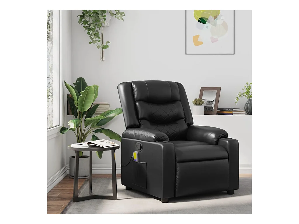 Sillón de masaje reclinable eléctrico cuero sintético negro