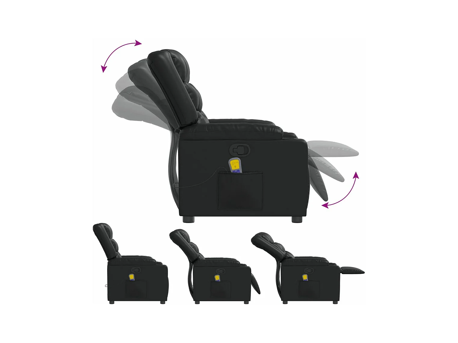 Sillón reclinable de masaje de pie cuero artificial negro