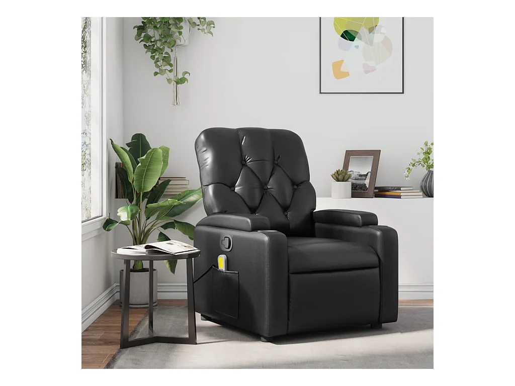 Sillón de masaje reclinable eléctrico cuero sintético negro