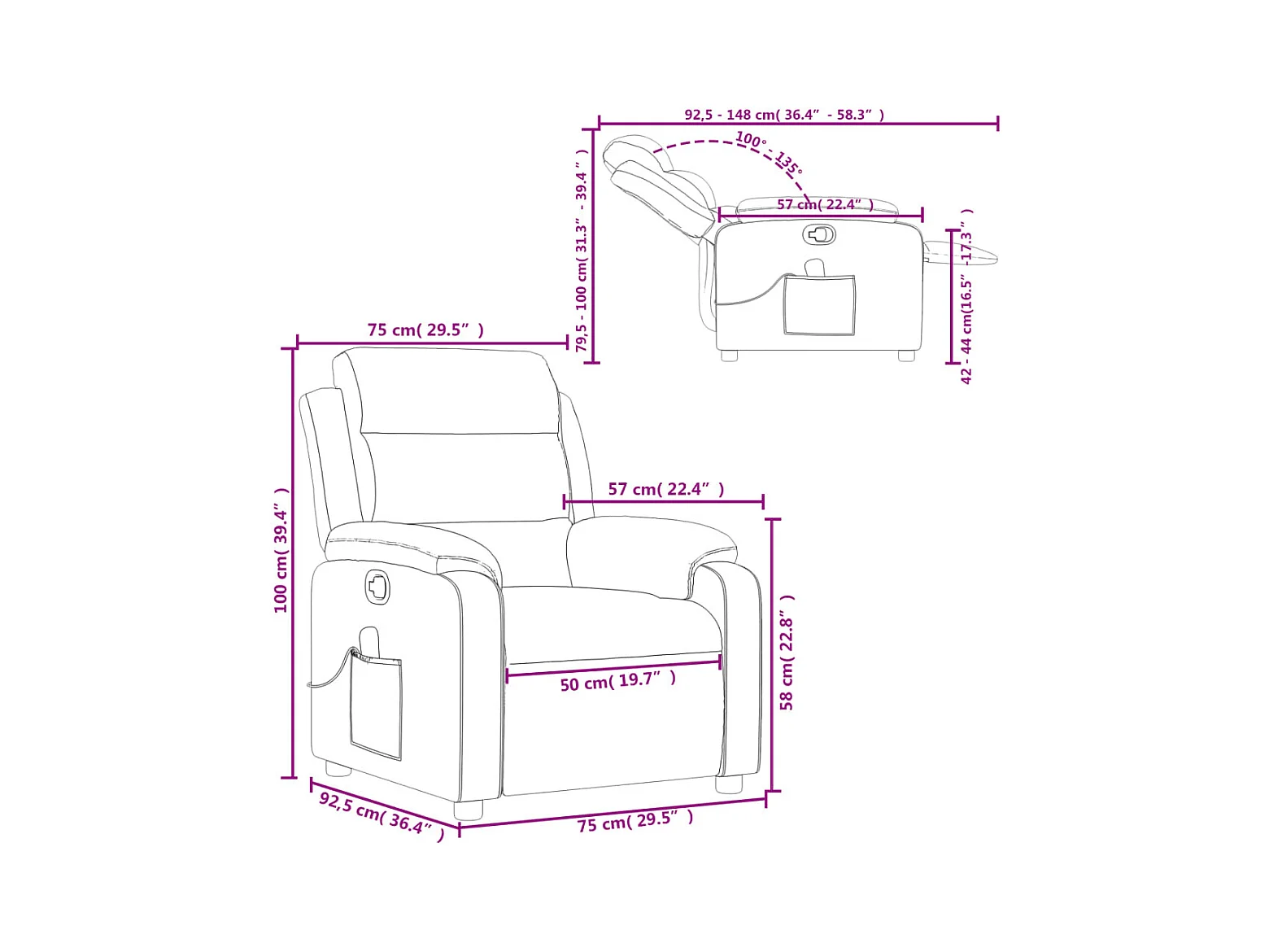 Sillón eléctrico reclinable elevable de tela gris taupe