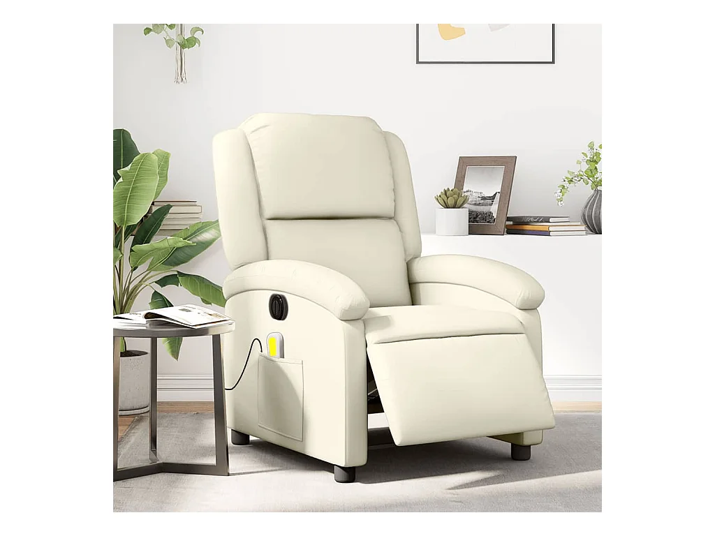 Sillón de masaje reclinable eléctrico cuero sintético crema YOE48413