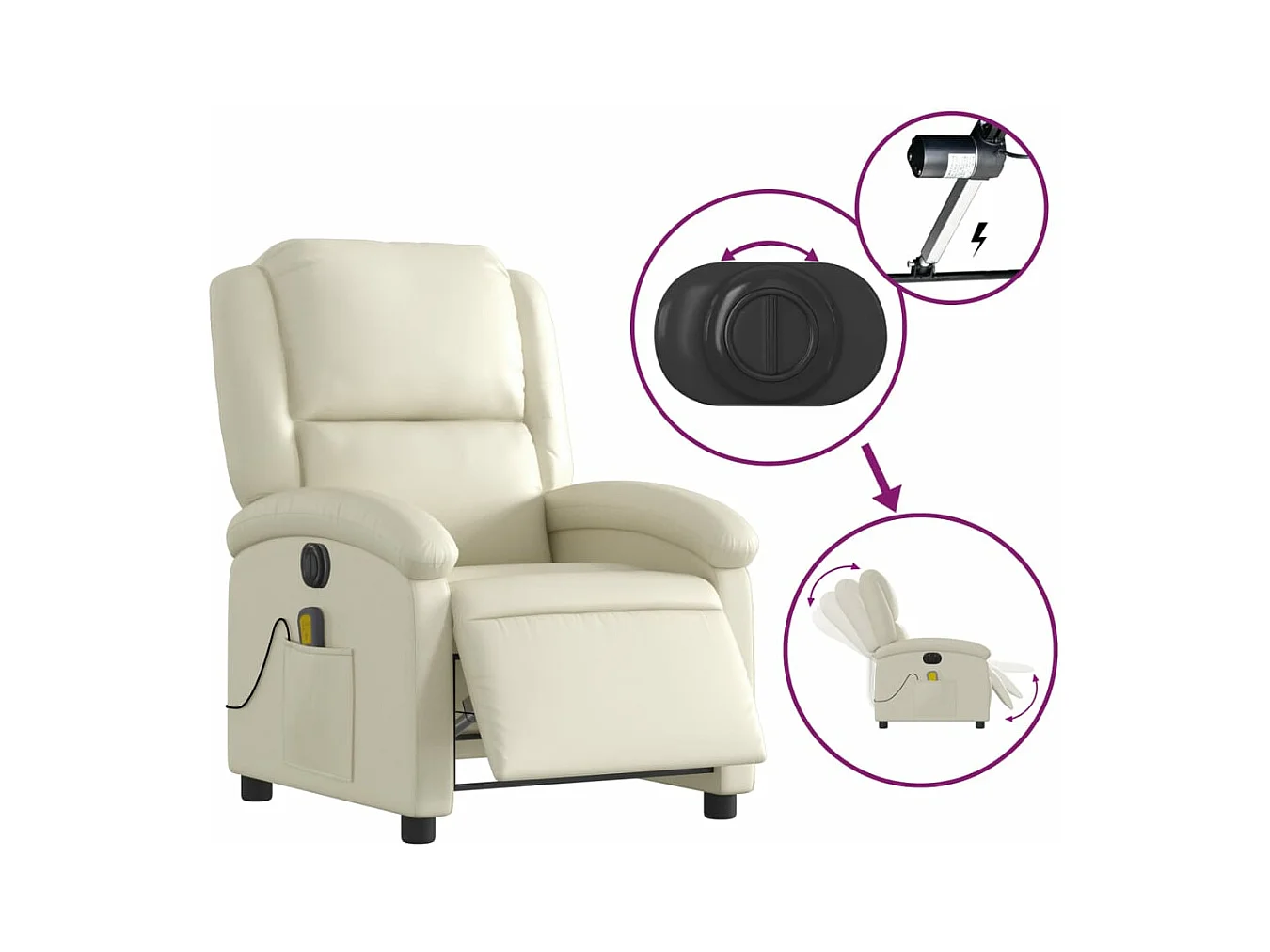 Sillón de masaje elevable eléctrico cuero sintético crema YOE14051