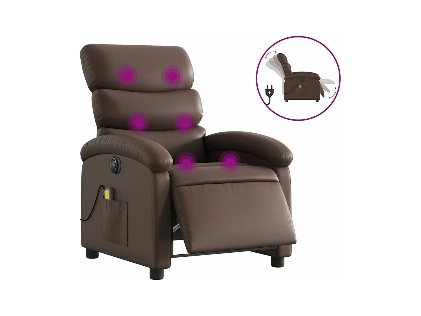 Sillón de masaje elevable eléctrico cuero sintético marrón YOE26991