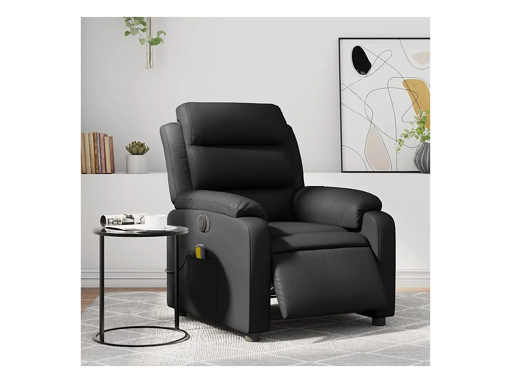 Sillón de masaje reclinable eléctrico cuero sintético negro