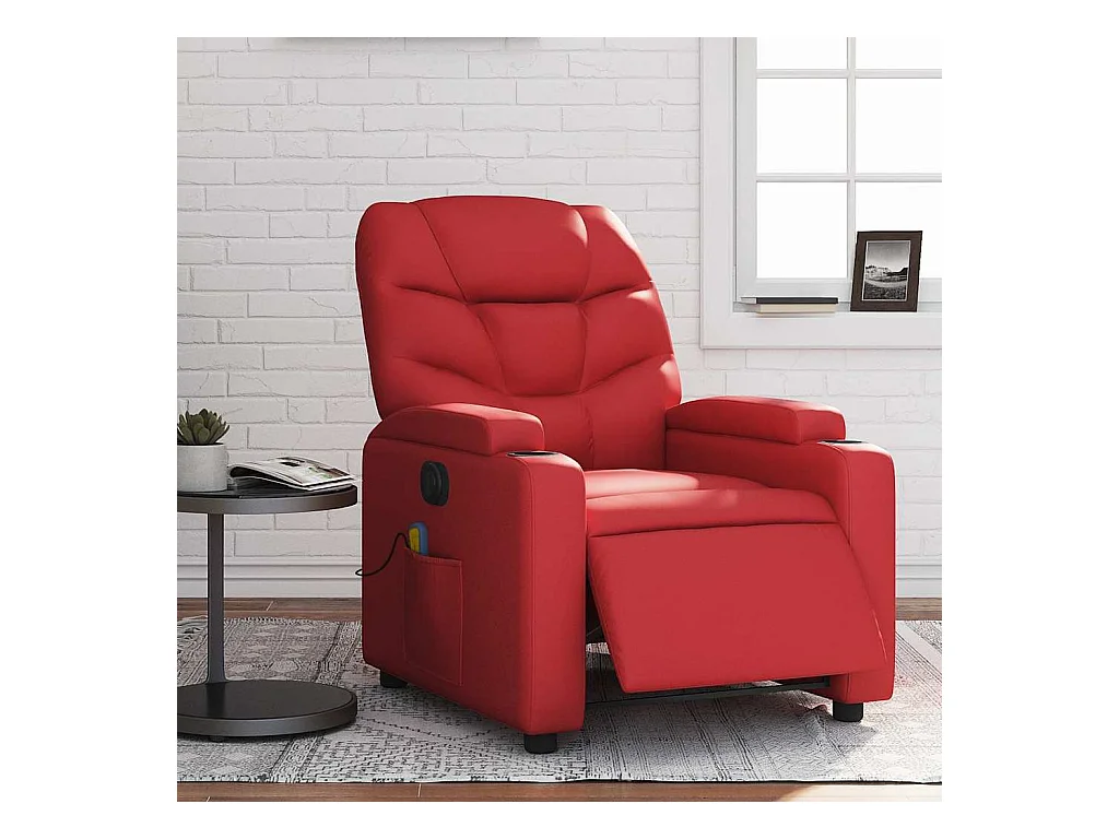 Sillón de masaje reclinable cuero sintético rojo tinto