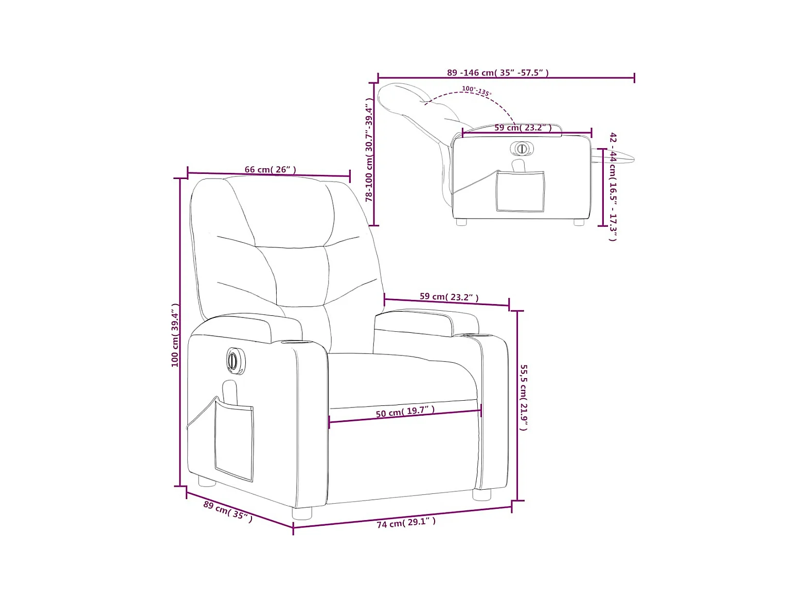 Sillón de majaje elevable eléctrico cuero artificial rojo