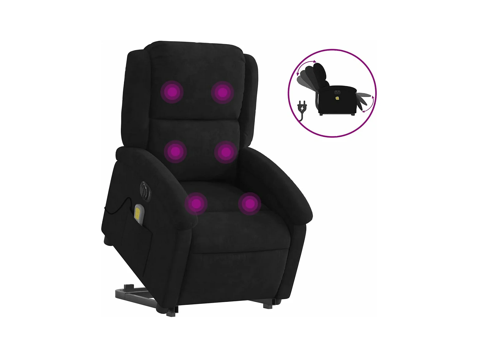 Sillón de masaje reclinable elevable terciopelo negro YOE84474