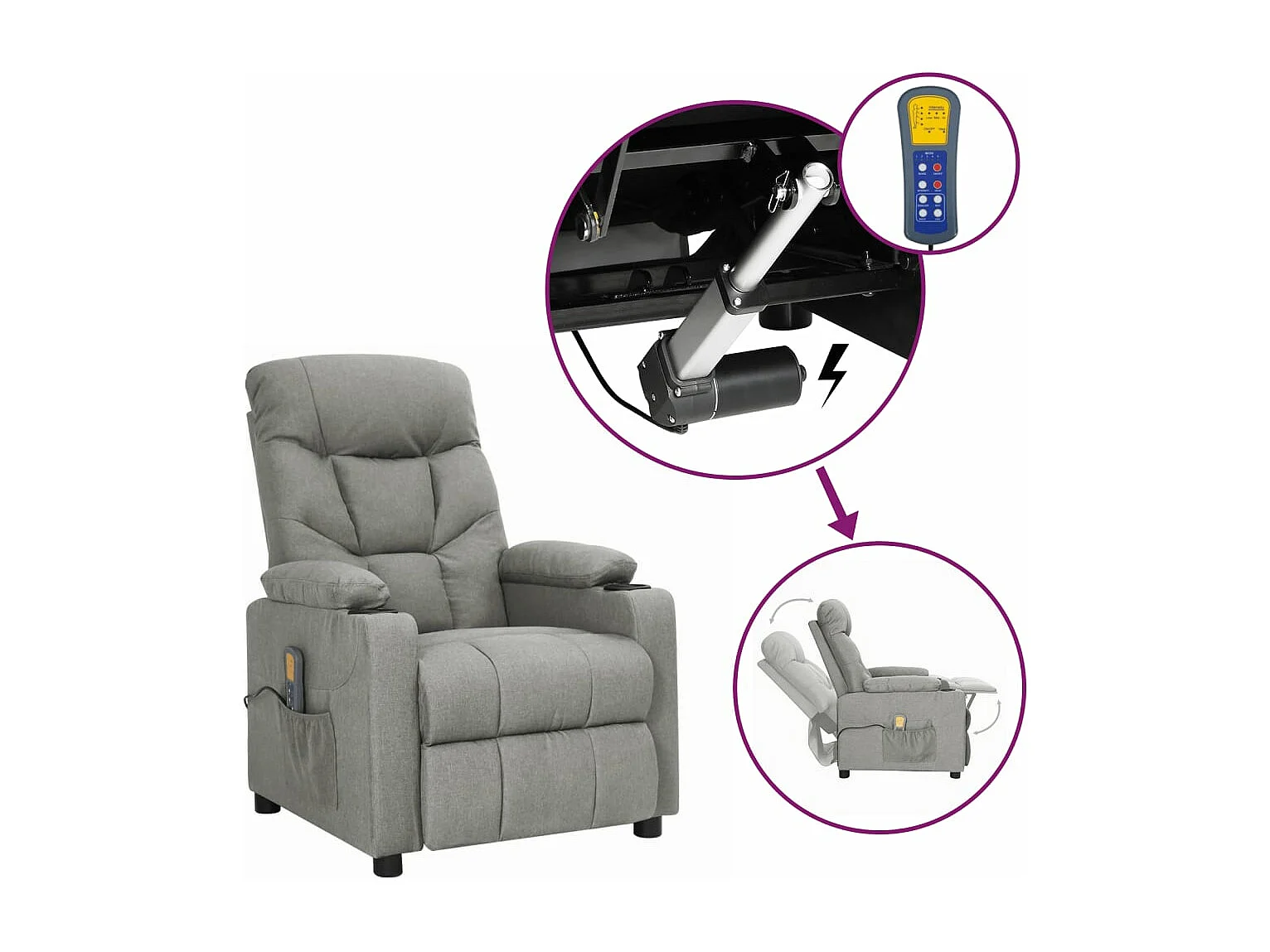 Sillón de masaje reclinable Tela gris claro