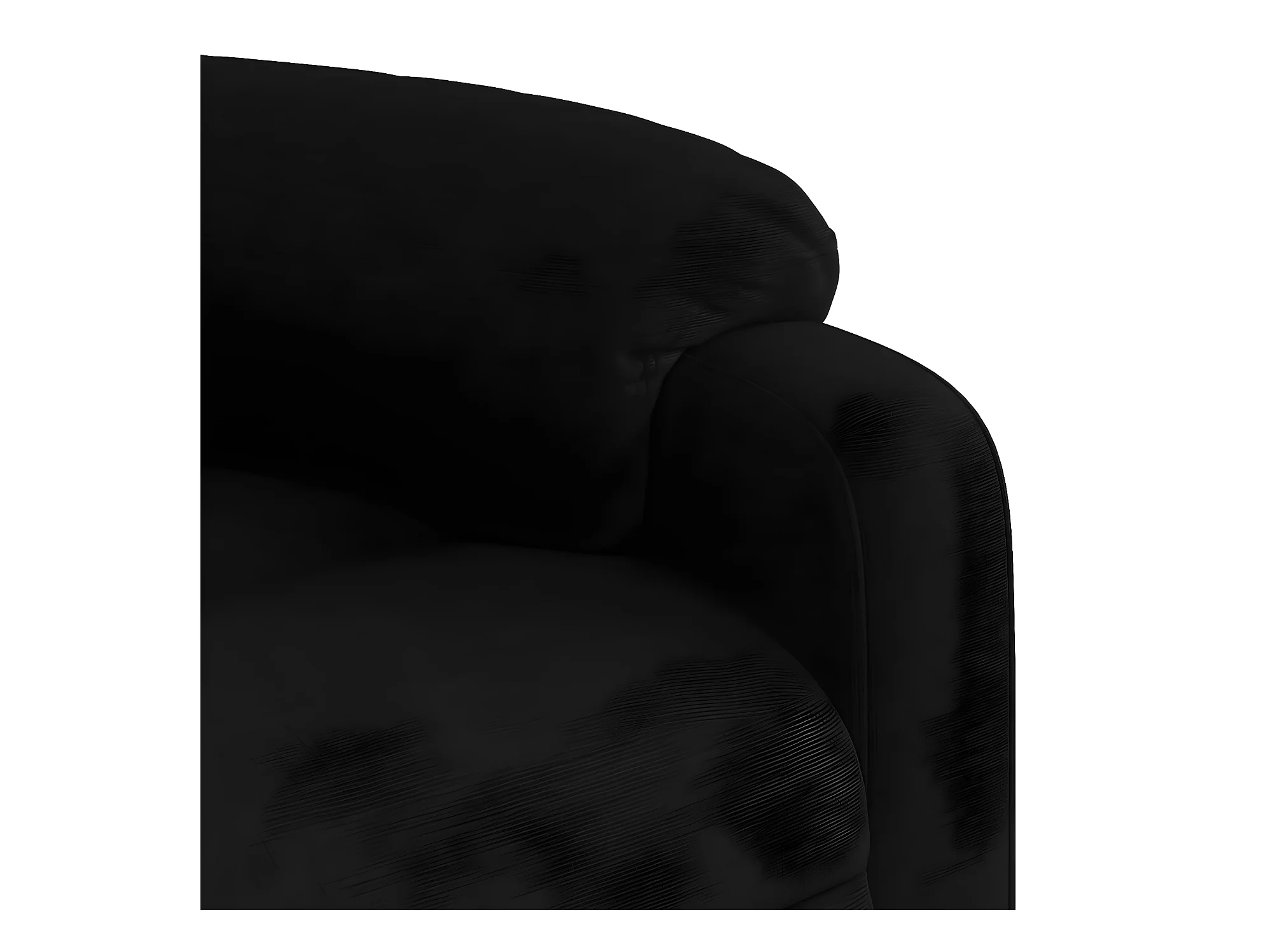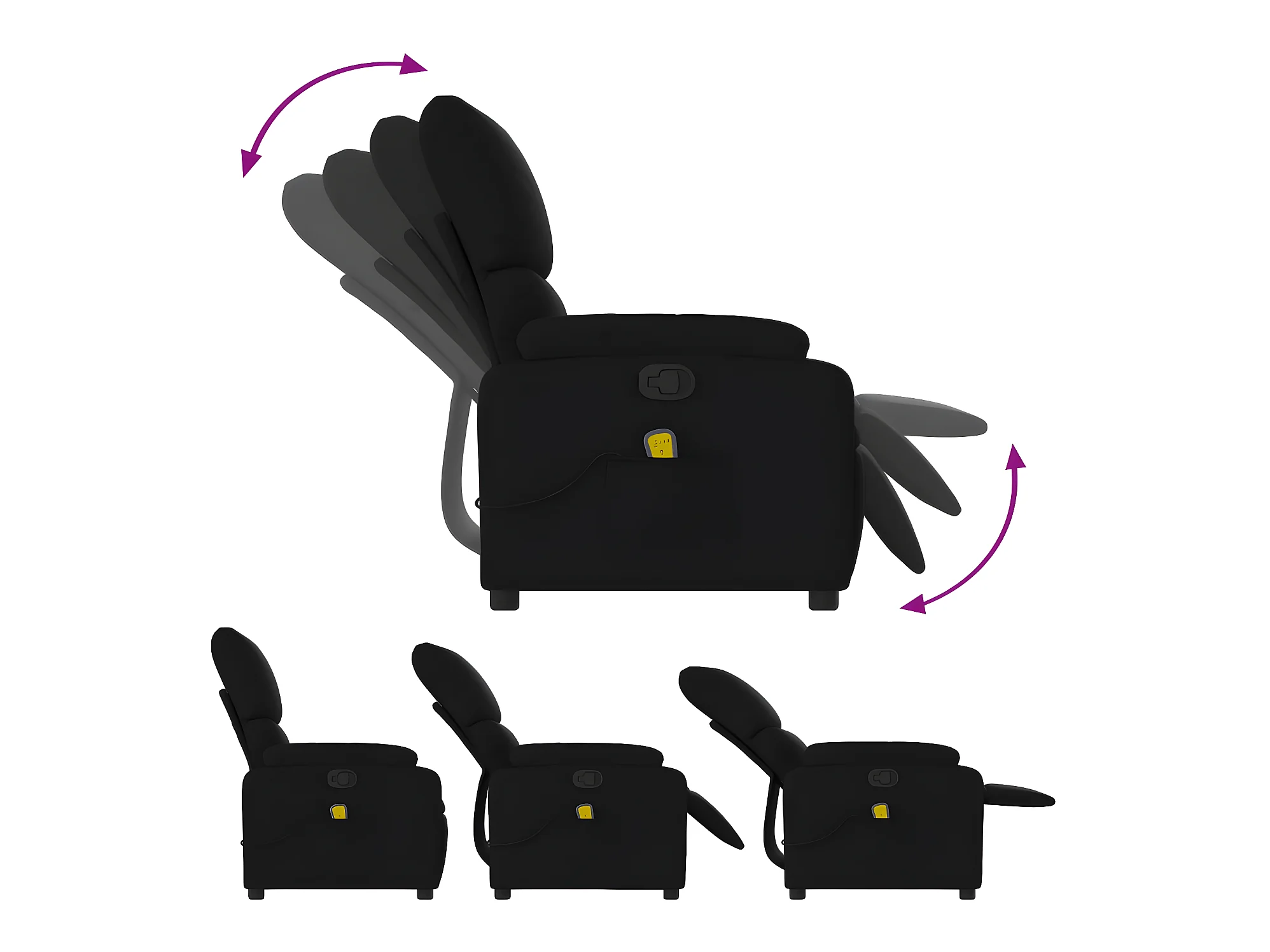 Sillón reclinable de masaje con reposapiés de tela negra.