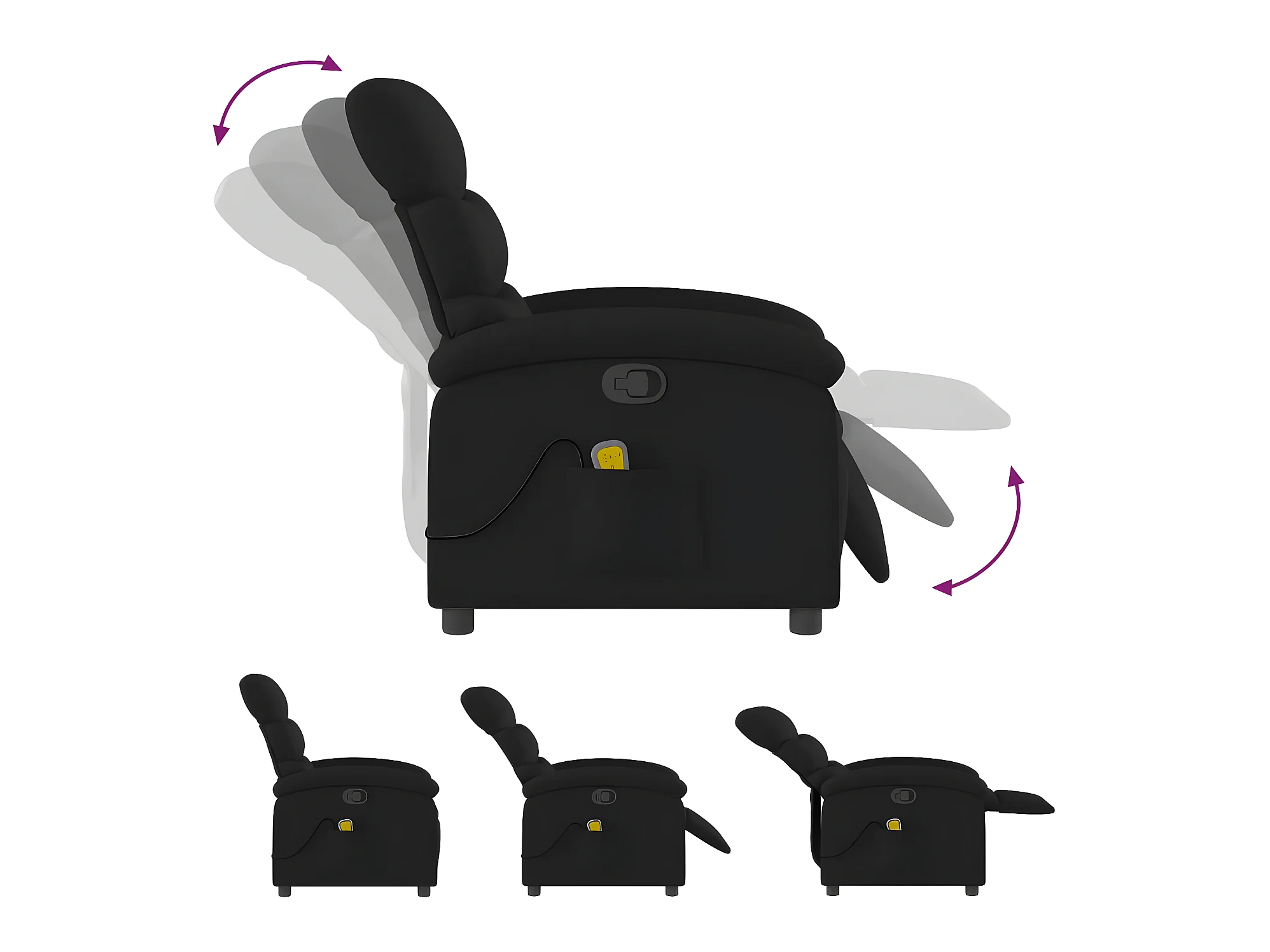 Sillón reclinable de masaje con reposapiés de polipiel negro.