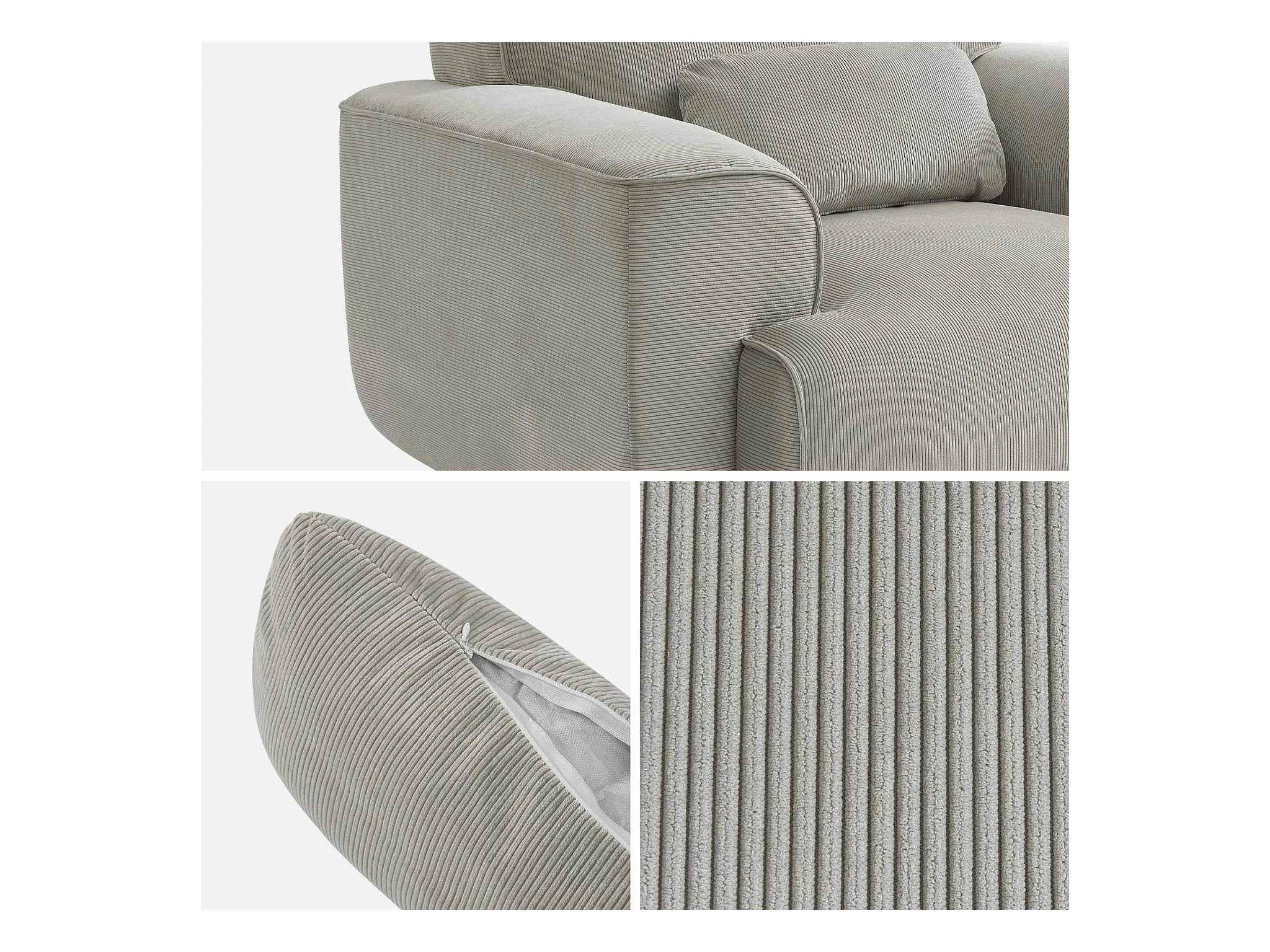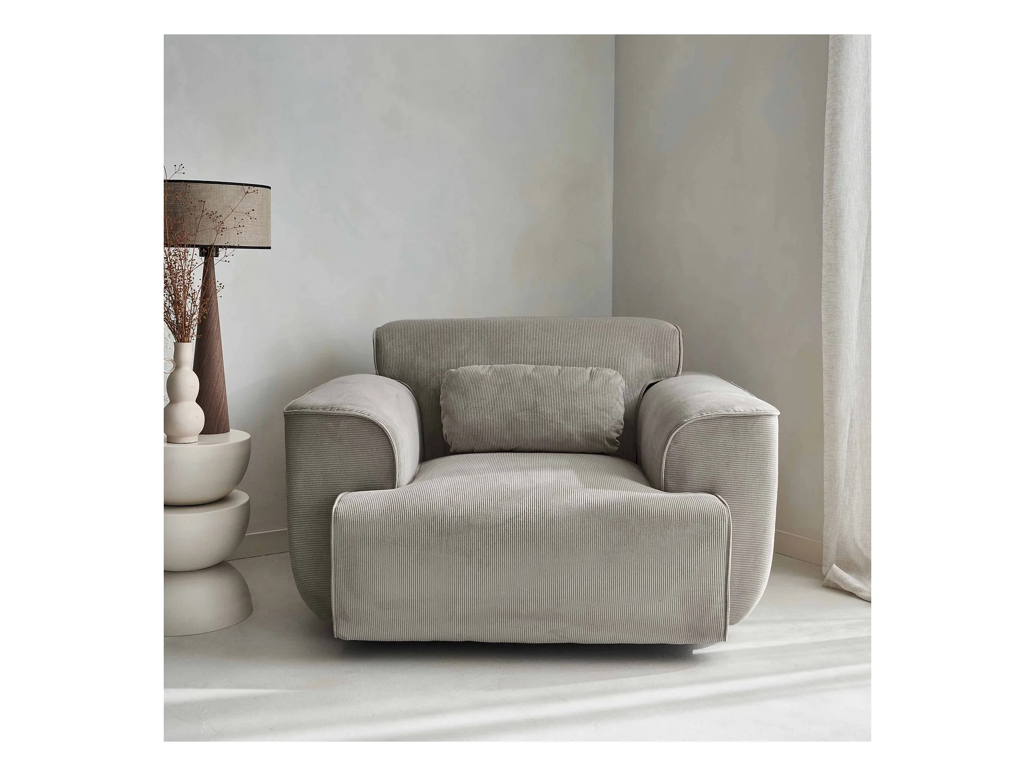 Sillón nórdico de tela efecto aterciopelado texturizado gris oscuro y madera clara ISKO