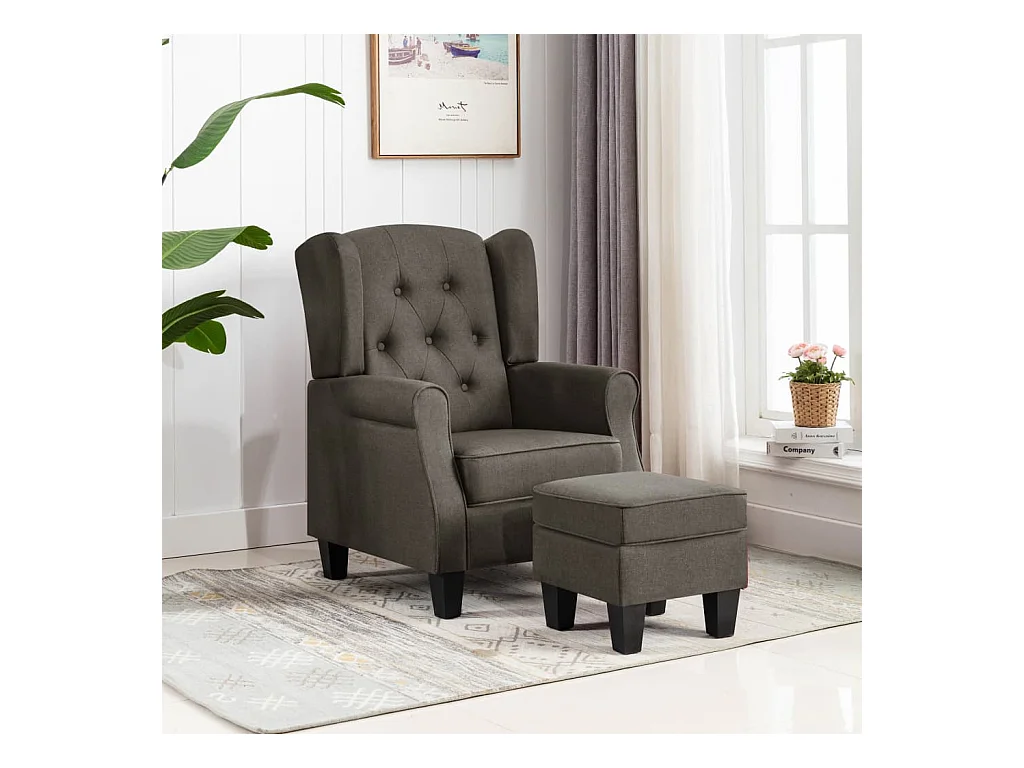 Sillón de relax con reposapiés de tela gris taupe SHL5074