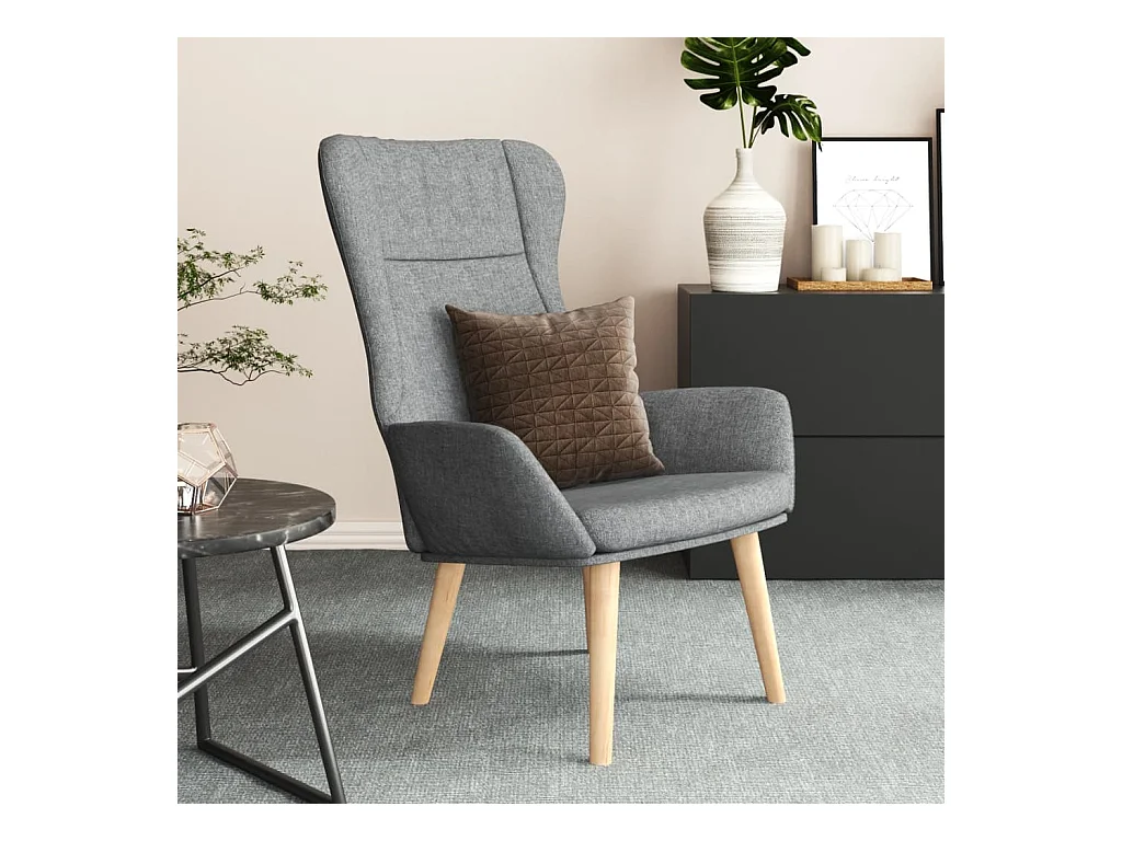 Sillón con patas mecedoras madera maciza caucho tela gris claro