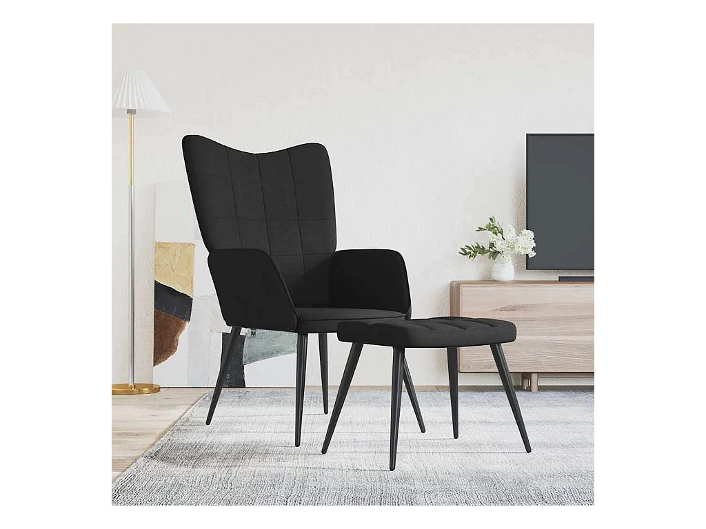 Sillón de relax | Sillón relajante con taburete de terciopelo negro SHL4943