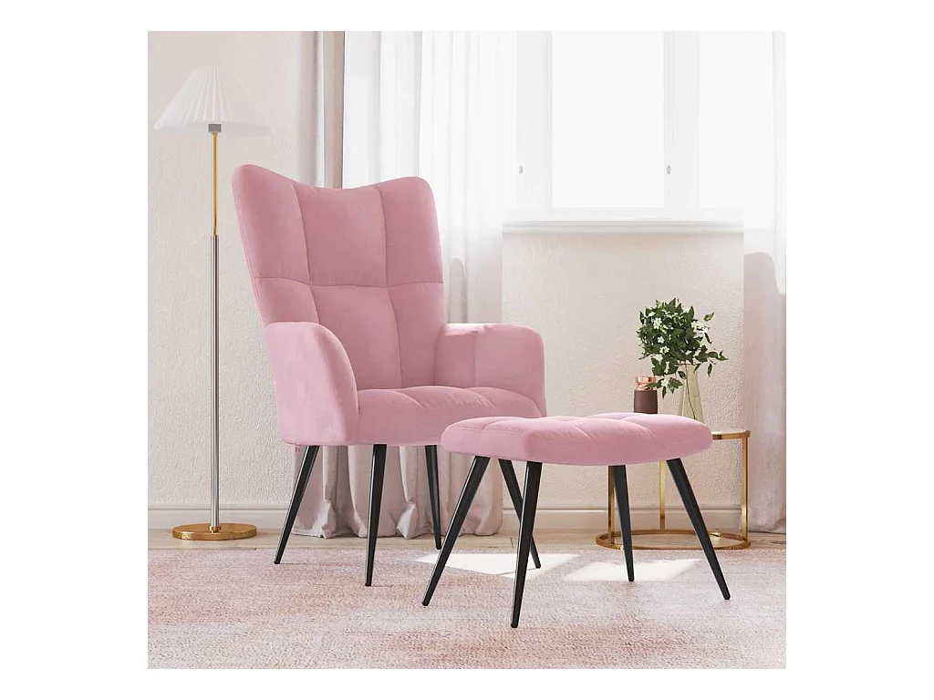 Sillón de relax | Silla de relax con taburete terciopelo rosa SHL4467