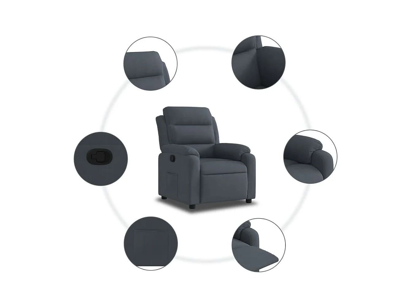Sillón de relax | Silla | Sillón reclinable de terciopelo gris oscuro SHL7580