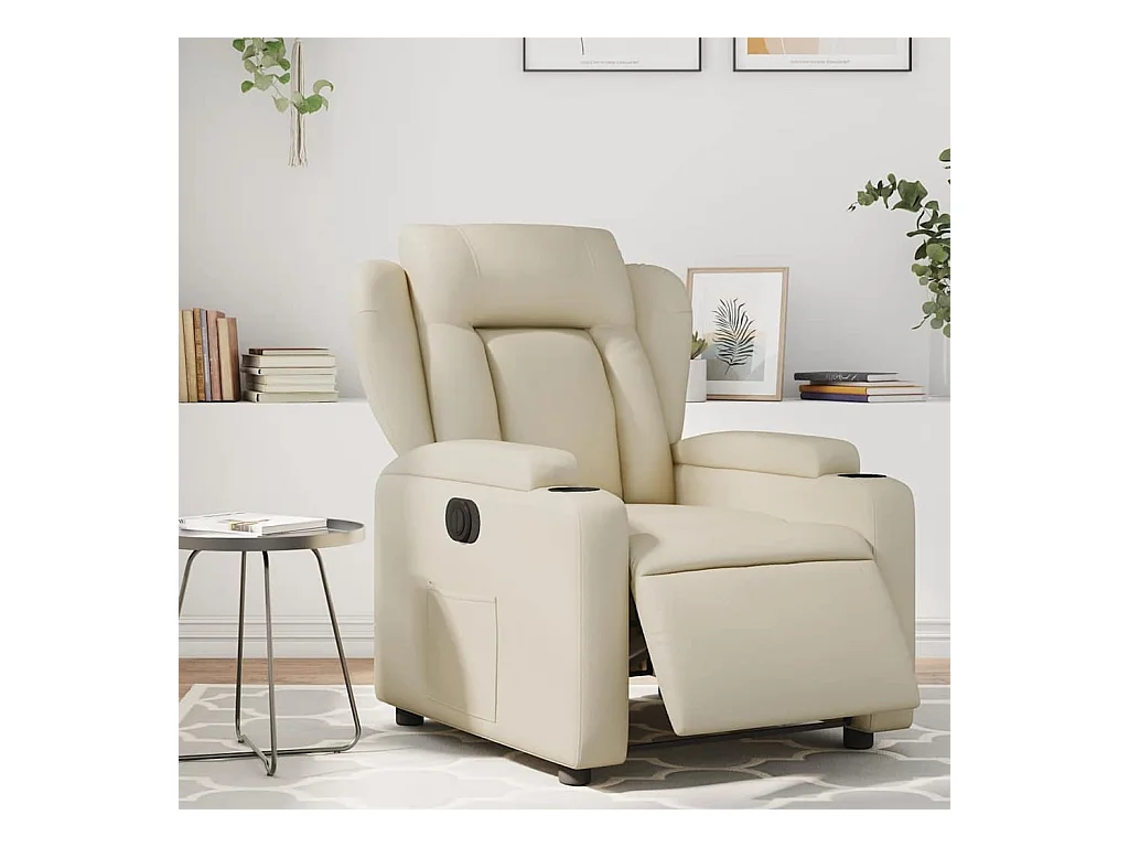 Sillón de relax | Silla | Sillón reclinable eléctrico de cuero sintético crema SHL3070