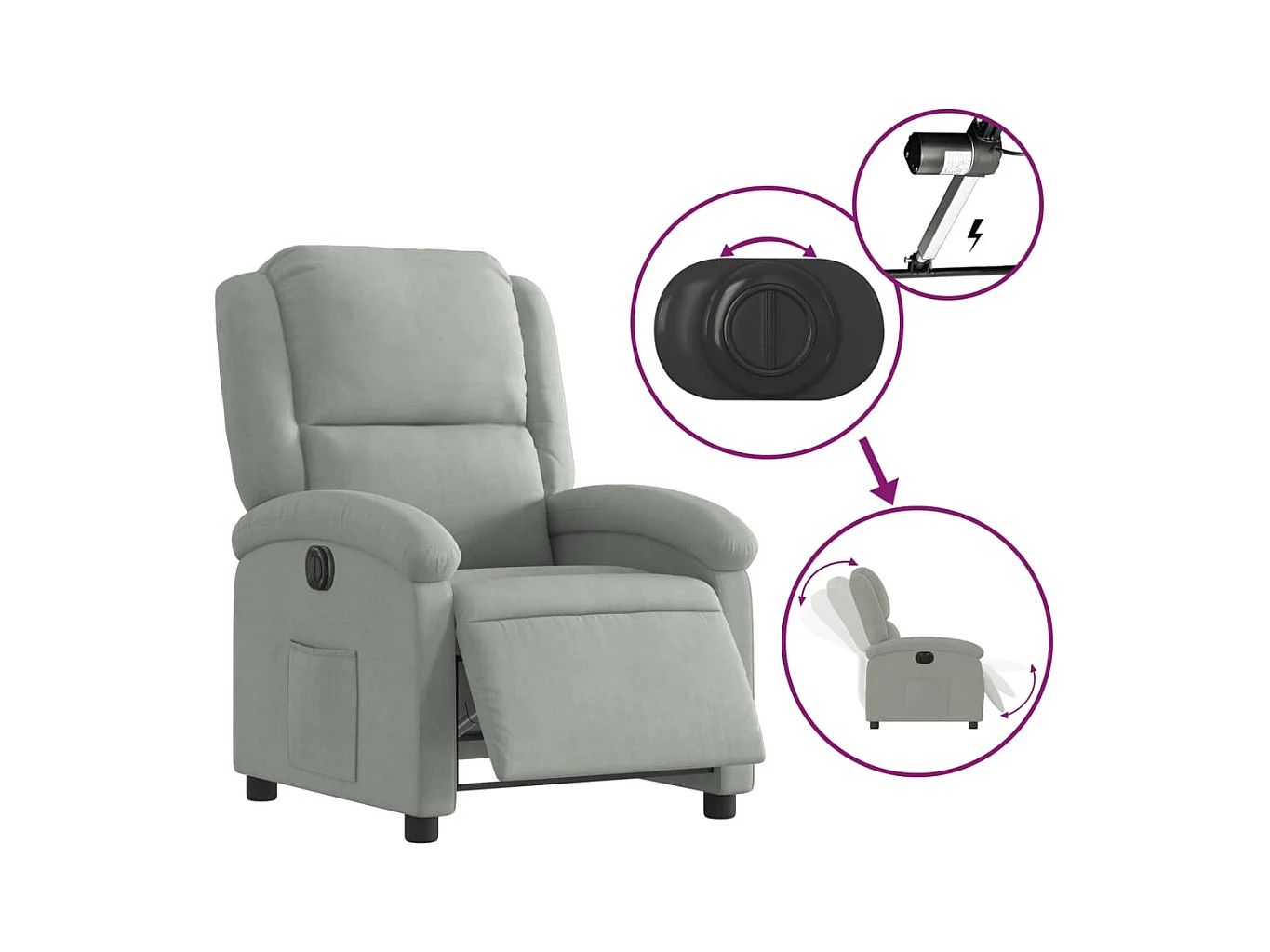 Sillón de relax | Silla | Sillón reclinable eléctrico de terciopelo gris claro SHL5985