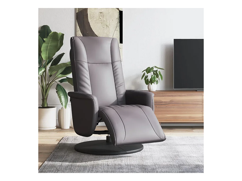 Sillón de relax | Sillón reclinable con reposapiés cuero sintético gris SHL9878