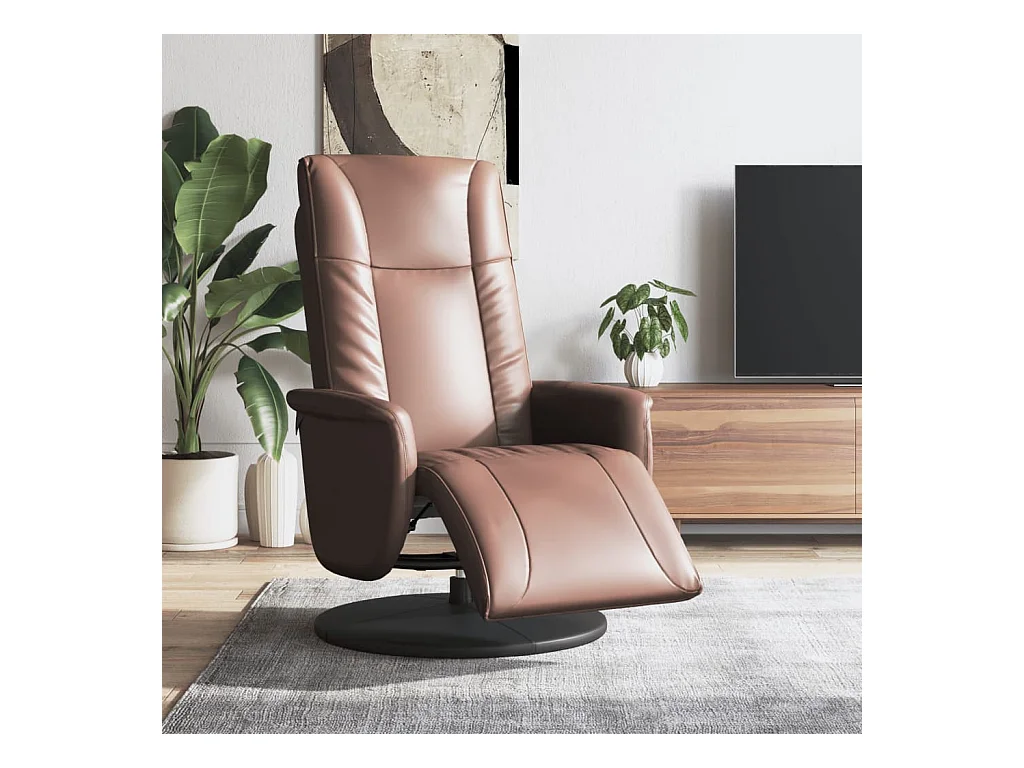 Sillón de relax | Sillón reclinable con reposapiés cuero sintético marrón SHL2420