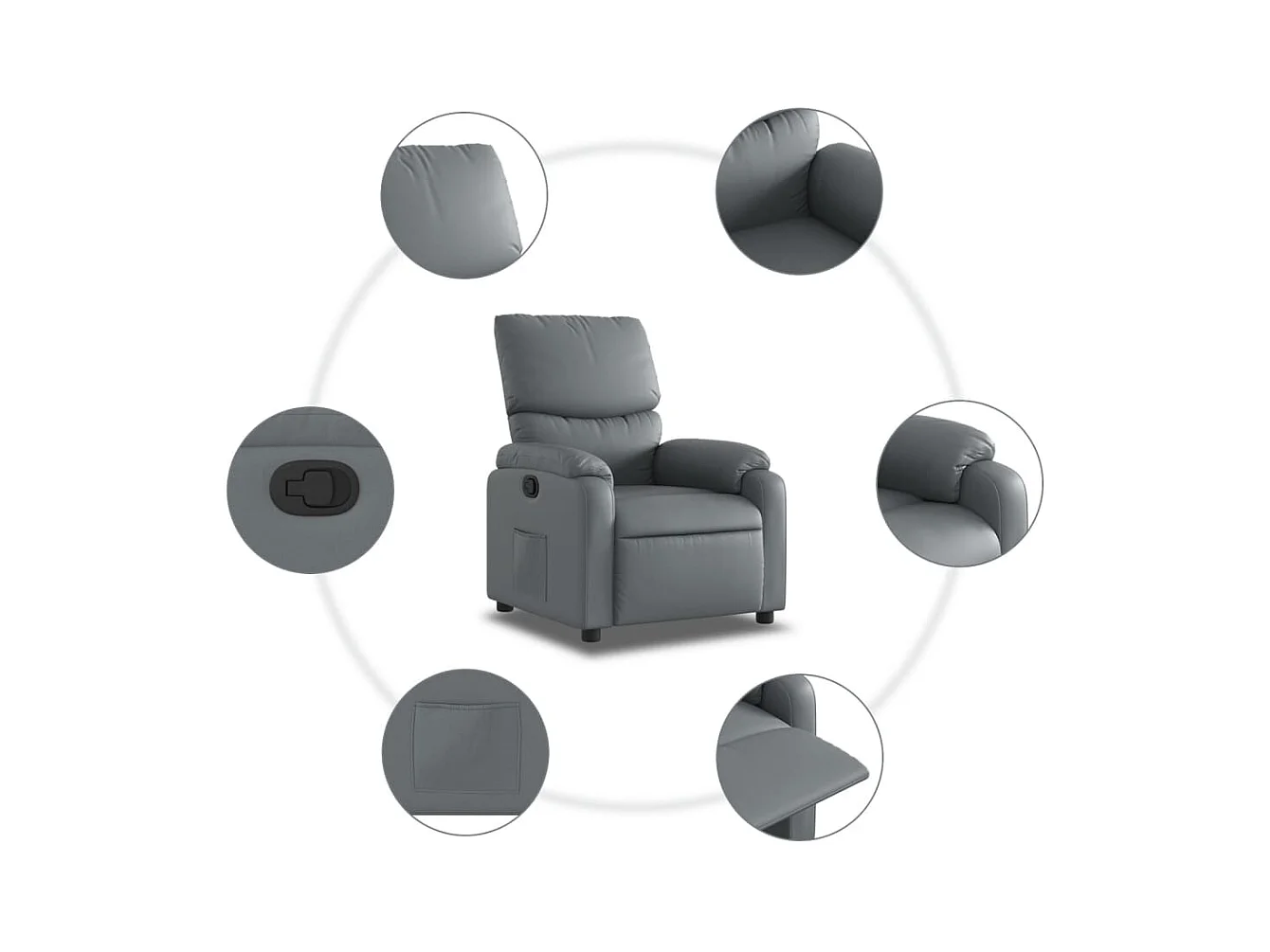Sillón de relax | Sillón reclinable de cuero sintético gris SHL9955