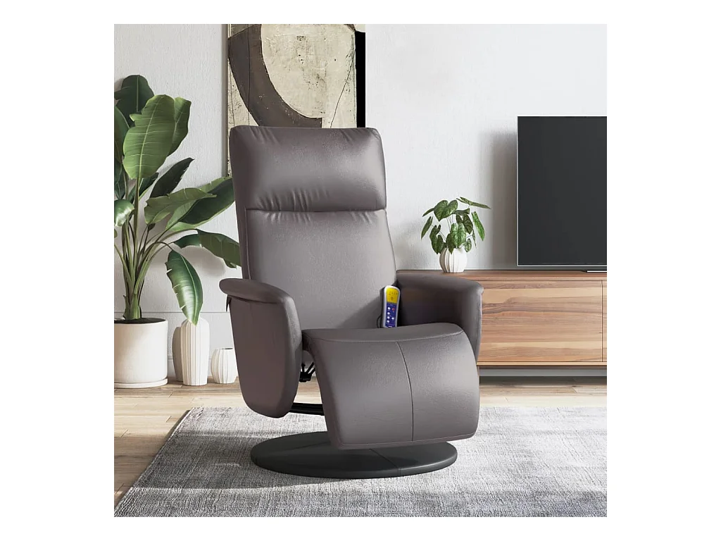 Sillón de relax | Sillón reclinable de masaje con reposapiés cuero sintético gris SHL2435