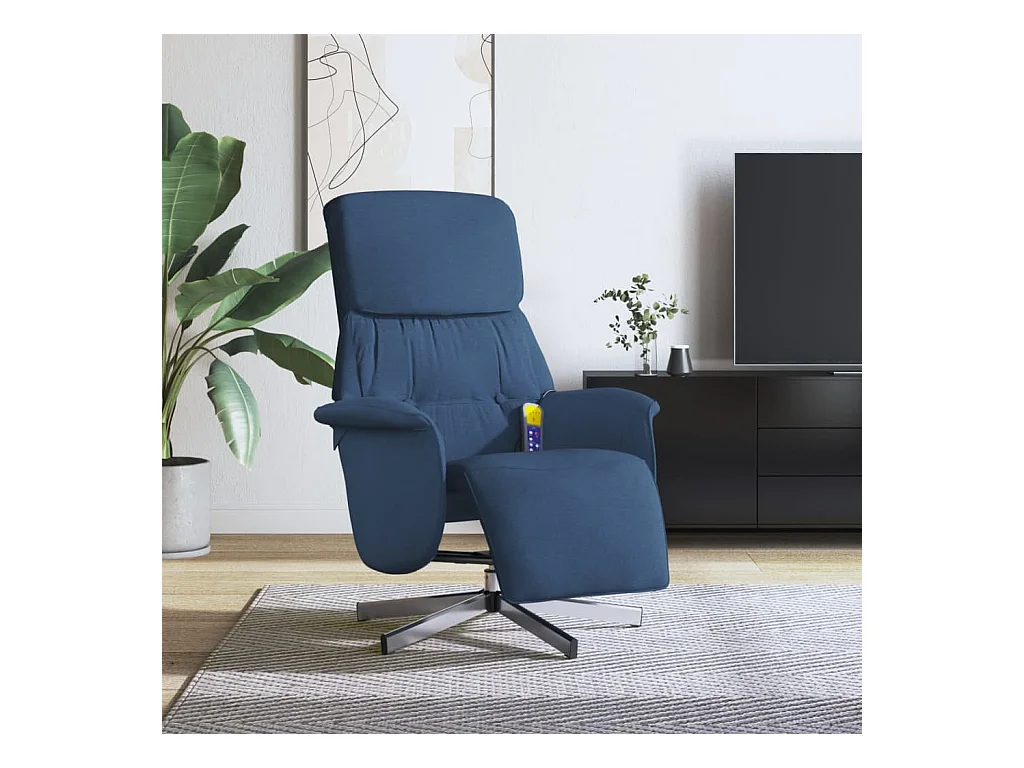 Sillón de relax | Sillón reclinable de masaje con reposapiés tela azul SHL5962