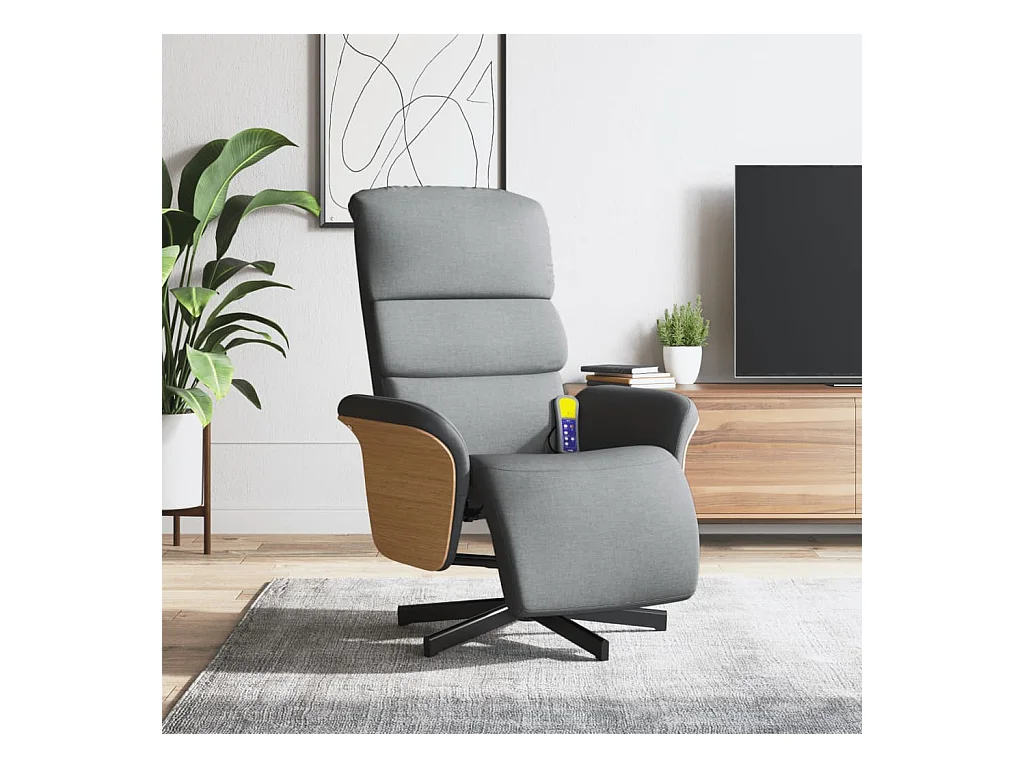 Sillón de relax | Sillón reclinable de masaje con reposapiés tela gris claro SHL3239
