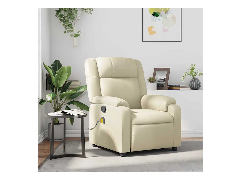 Sillón de relax | Sillón reclinable de masaje cuero sintético crema SHL5273