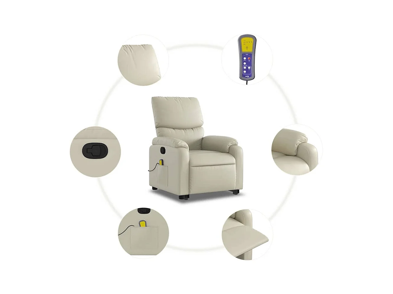 Sillón de relax | Sillón reclinable de masaje de pie cuero artificial color crema SHL3070