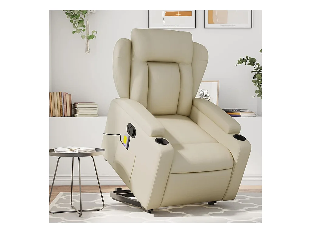 Sillón de relax | Sillón reclinable elevable cuero artificial color crema SHL4404