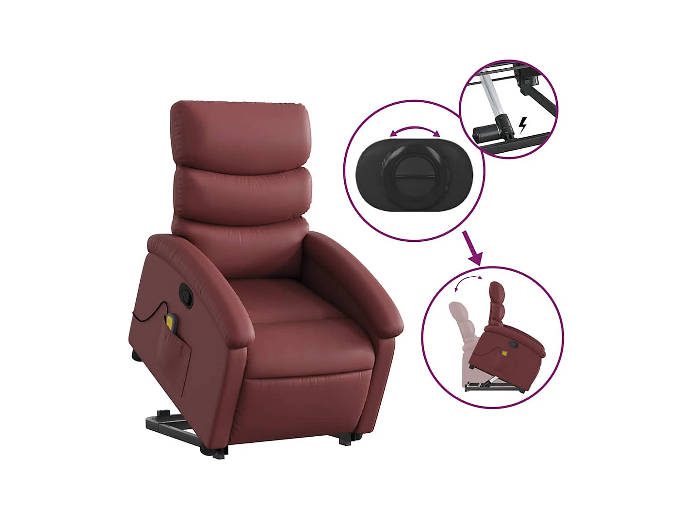 Silla de relax | Sillón elevable eléctrico cuero artificial rojo tinto SHL9495